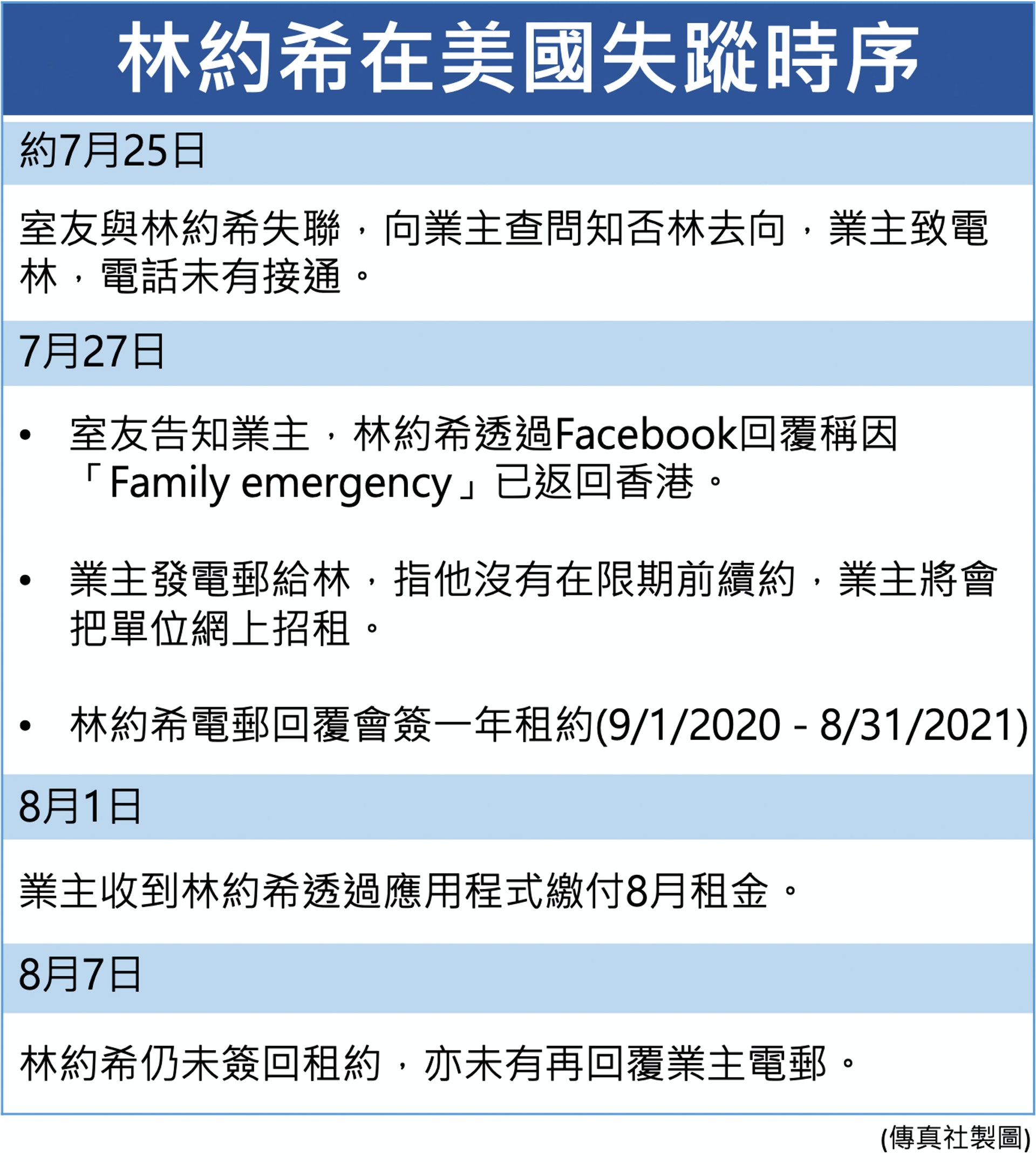 《傳真社》整理林約希失去聯絡的時序。(傳真社製圖)