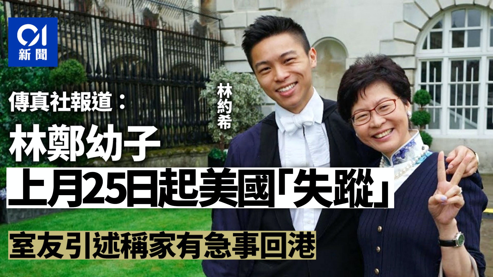 《傳真社》報道,林鄭月娥幼子、在美國哈佛大學攻讀博士的次子林約希,自上月25日起失蹤至今,並一度向室友稱「家有急事」回港。其室友、大學同學、租住單位的業主,自7月27日後亦未能聯絡上對方。5 X& g6 @/ @; K