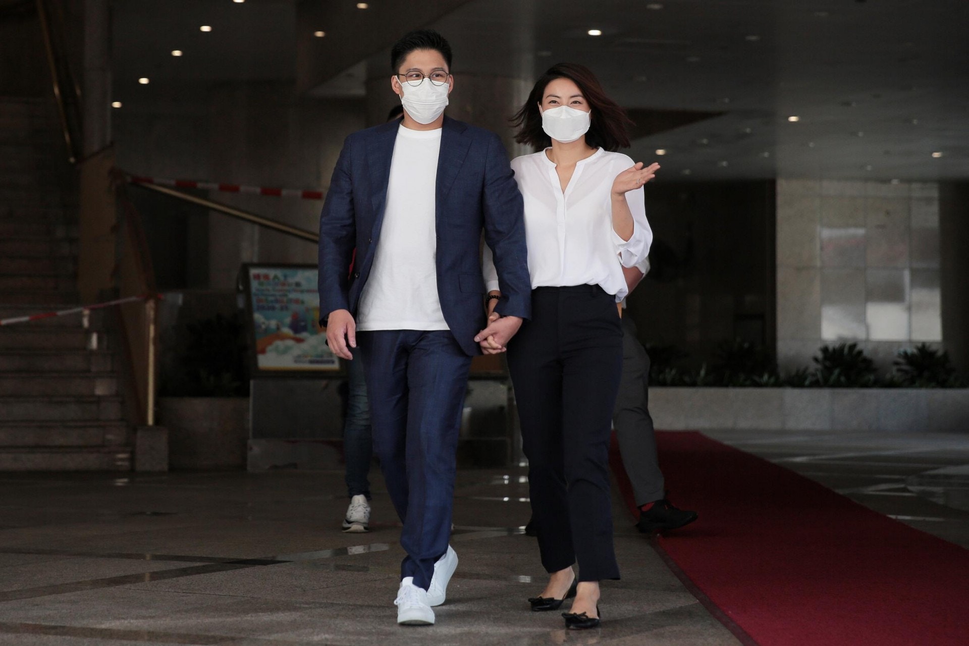 ( d- c& S3 x! ]# [公仔箱論壇霍啟剛由太太郭晶晶陪同下報名參選。(李澤彤攝/資料圖片) |