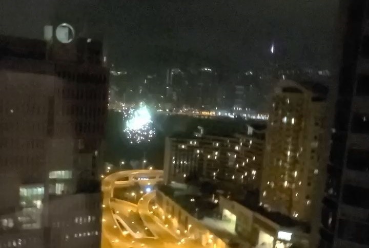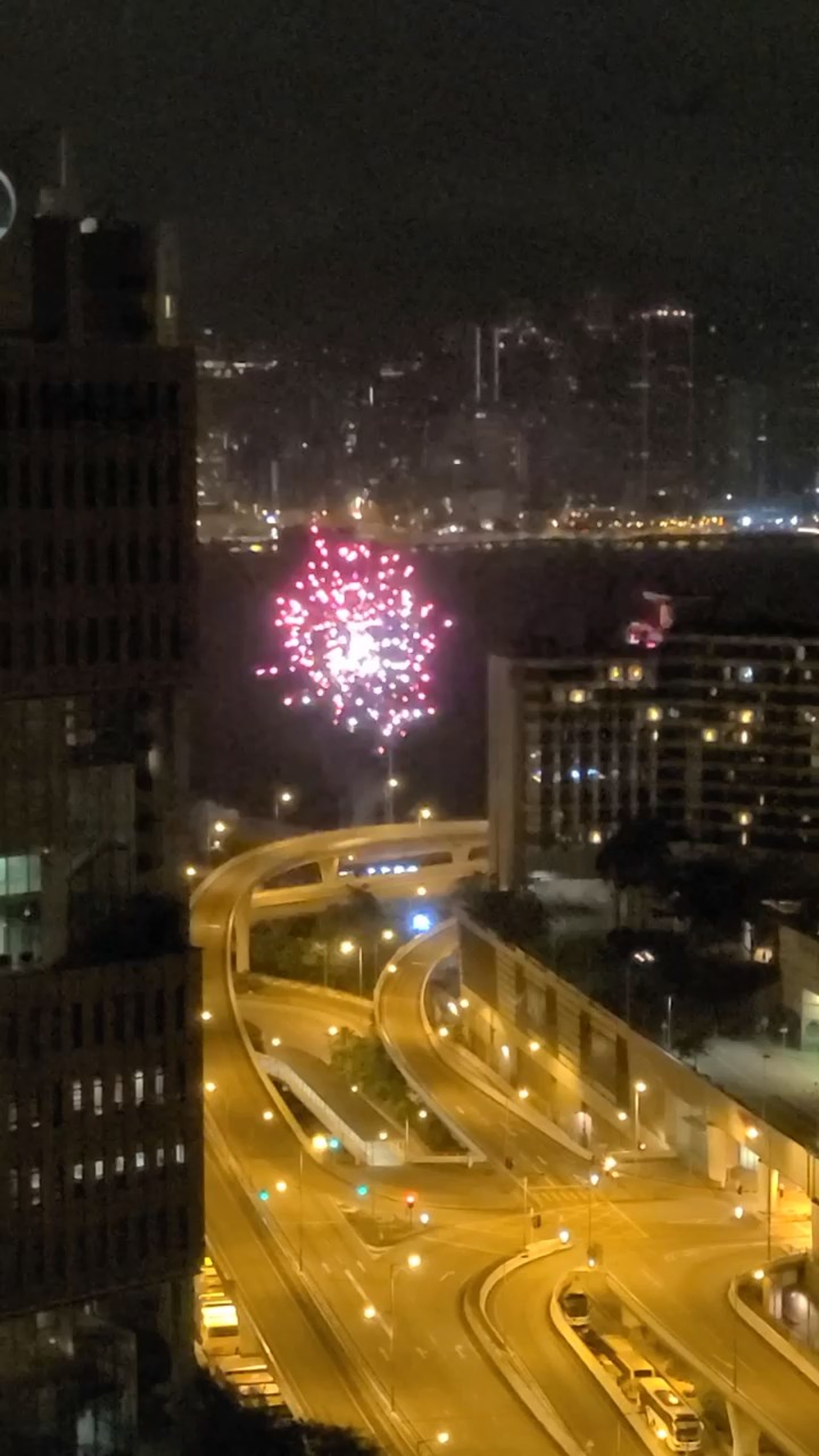 . }: o# [6 \- h& Dos.tvboxnow.com五光十色的煙花,在紅鸞道近海傍一帶上空綻放。(fb「香港突發事故報料區」影片截圖)