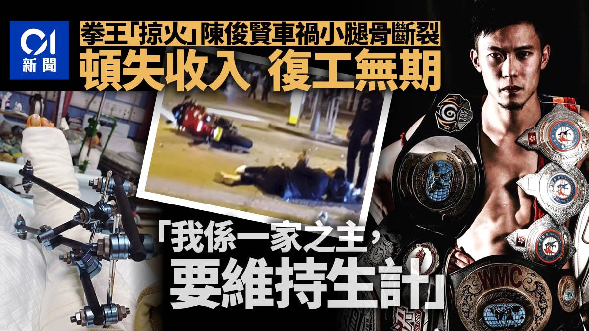 L5 \7 K! d9 x$ B3 w" h3 f# jTVBNOW 含有熱門話題,最新最快電視,軟體,遊戲,電影,動漫及日常生活及興趣交流等資訊。前港隊泰拳代表、外號「掠火」的拳王陳俊賢,本周四(7日)於天水圍駕電單車遇車禍,右小腿骨斷裂。他接受《香港01》電話訪問時,憶述事發時被對面線一輛的士右轉時撞及,質疑對方未有讓車釀成意外,坦言會追究賠償。陳俊賢又指腿部傷勢最少需要半年方可進行輕微運動,重踏擂台的夢想更遙遙無期,「淨係諗點繼續生活,我都係一家之主,都要維持生計」。
