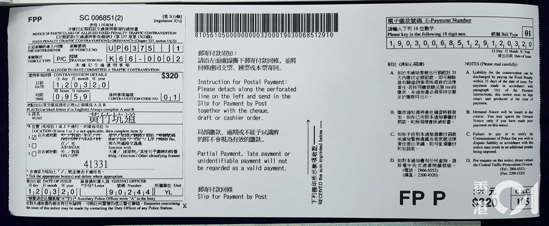 4 |0 \% H: a) ?& t. `3 p. k警方經調查後,初步相信被捕男子為逃避抄牌的320元定額罰款,將一張偽造的電子違例泊車告票,放在私家車前水撥下,意圖誤導警務人員。另外,警員亦於涉事車輛內發現另一張偽造的電子告票。