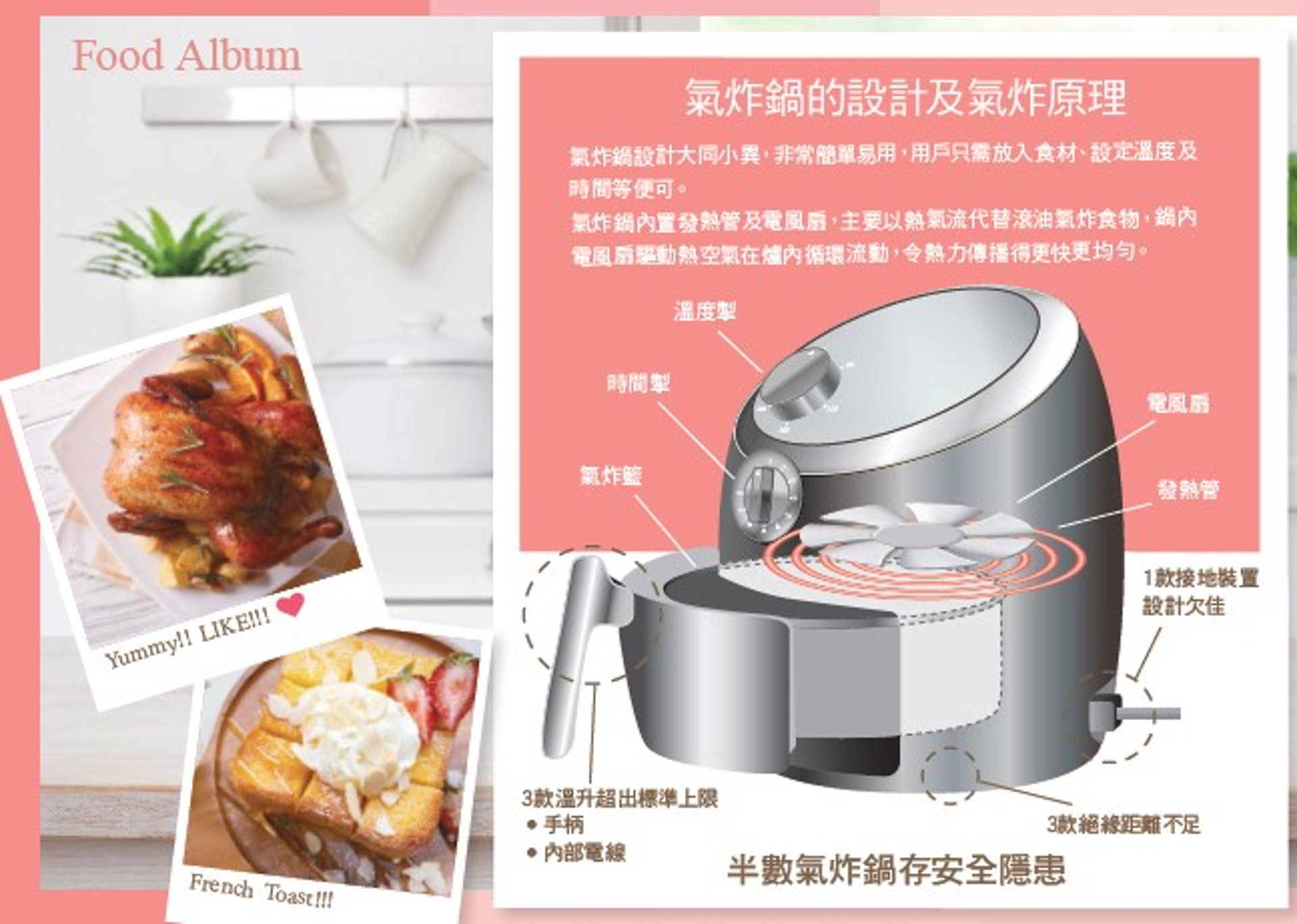 3 L0 x( e1 H" M/ }* mos.tvboxnow.com消委會測試市面上12款氣炸鍋的電器安全及效能表現,6款氣炸薯條後的「可能令人類致癌」物超標。(《選擇》截圖)