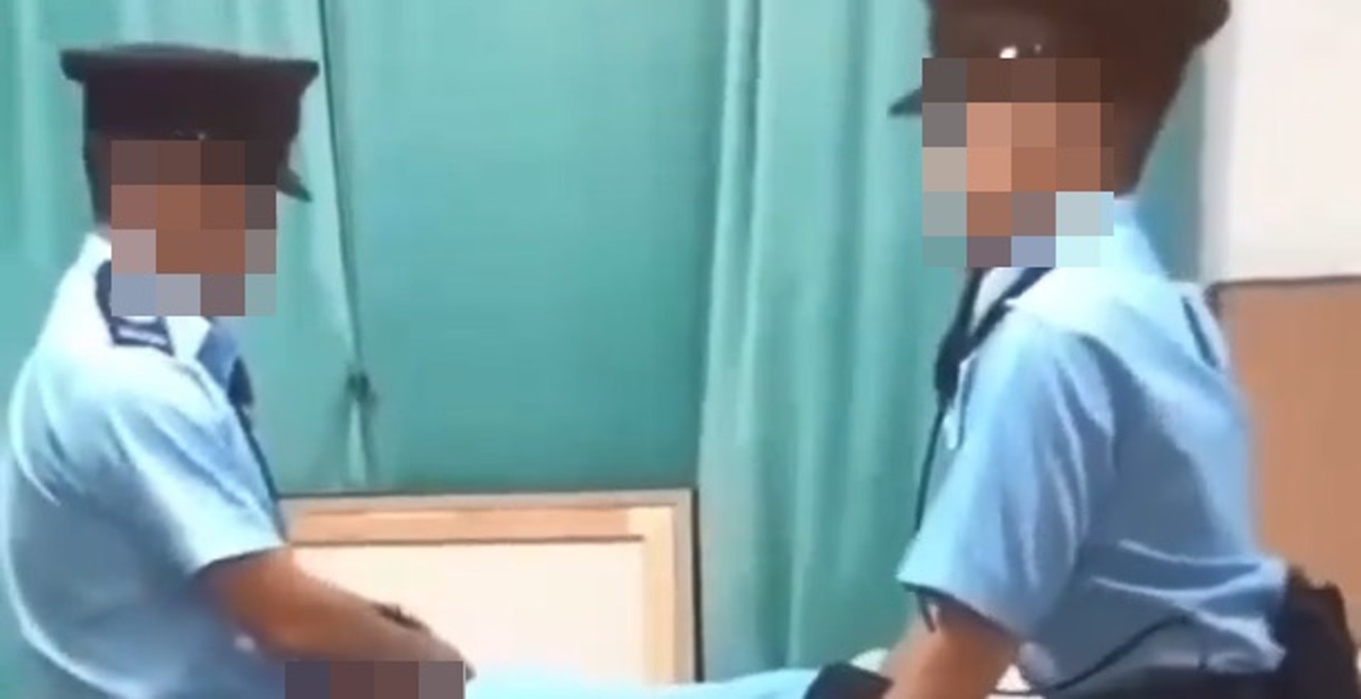 1 l9 D6 T+ y. G4 l6 E6 e3 H" {5 T日前網上流傳一段片段,3名身穿疑似警察制服的男子進行不雅動作,包括疑似口交及性交舉止。警方昨天(10日)在元朗區拘捕2名分別40及45歲的同居男子,涉嫌「發布淫褻物品」、「管有虛假文書」、「處理贓物」、「管有攻擊性武器」及「擅用警察制服」,其中一男子為片中人。警方指,於其單位內檢獲多件疑似警察制服及通訊機、手扣、警棍等裝備,其中警察制服仿真度頗高,有機會屬失物。+ B7 U8 t! Q; Q3 ^: }3 ~4 X$ }7 W- S