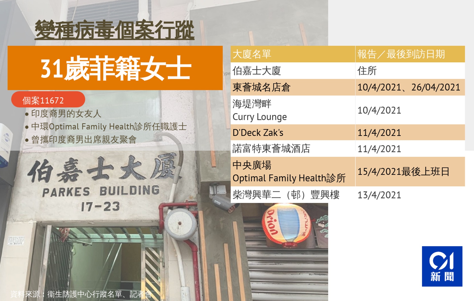 28歲菲律賓抵港男患者(#11544)於今年3月25日從菲律賓抵港,由當日至4月6日在尖沙咀華美達酒店接受檢疫。在4月5日,即檢疫期間的第12天的檢測為陽性。而印裔男子於3月19日從杜拜抵港,在尖沙咀華美達酒店接受檢疫至4月8日。二人檢疫期重疊12日,所住的房間亦相鄰。