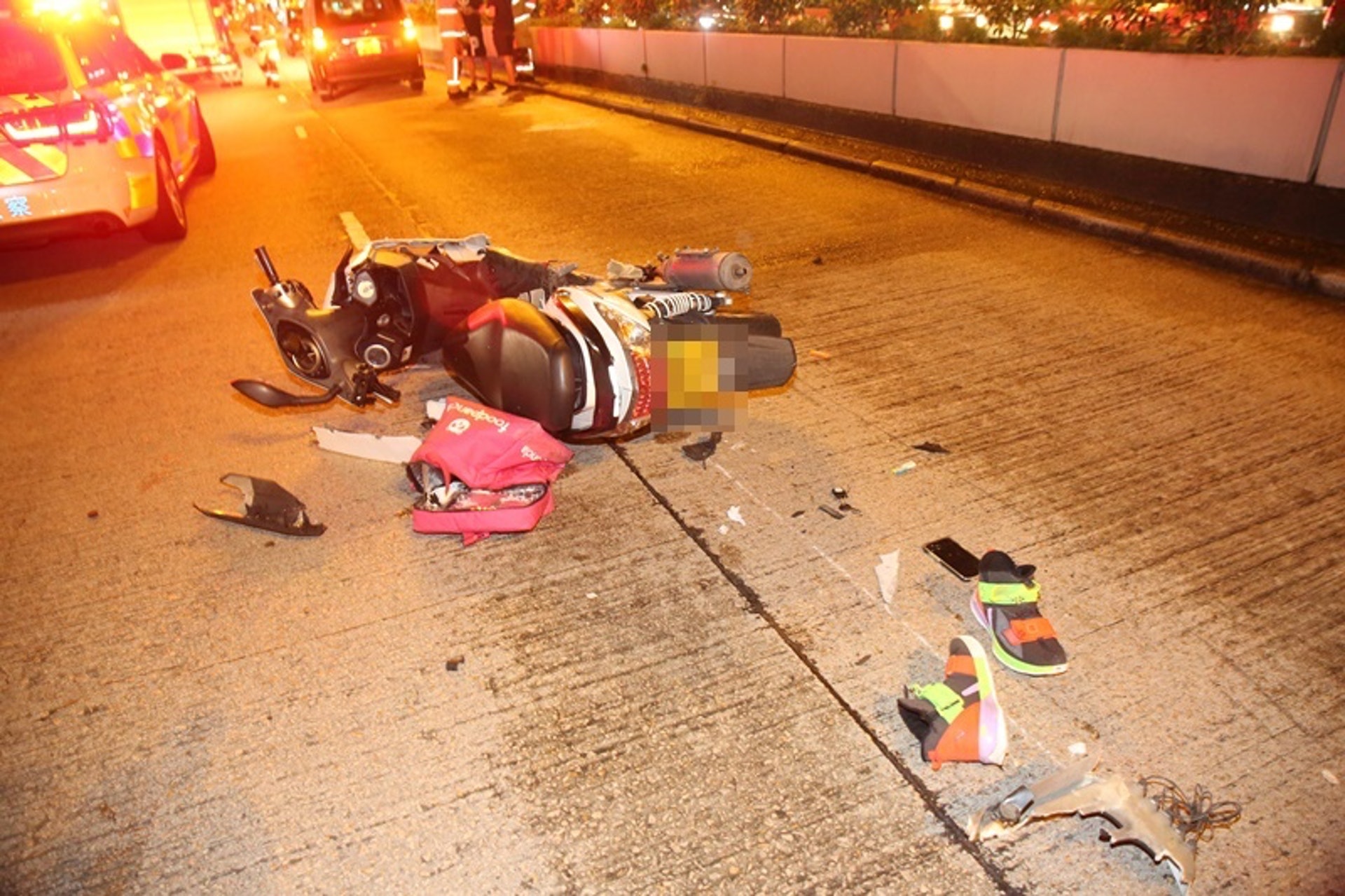 警方在場調查車禍肇因,在現場遺下一個foodpanda的食物袋,相信是涉事電單車所有。據報,意外後部份電單車零件飛脫,曾擊中一輛對面線之的士車頭。