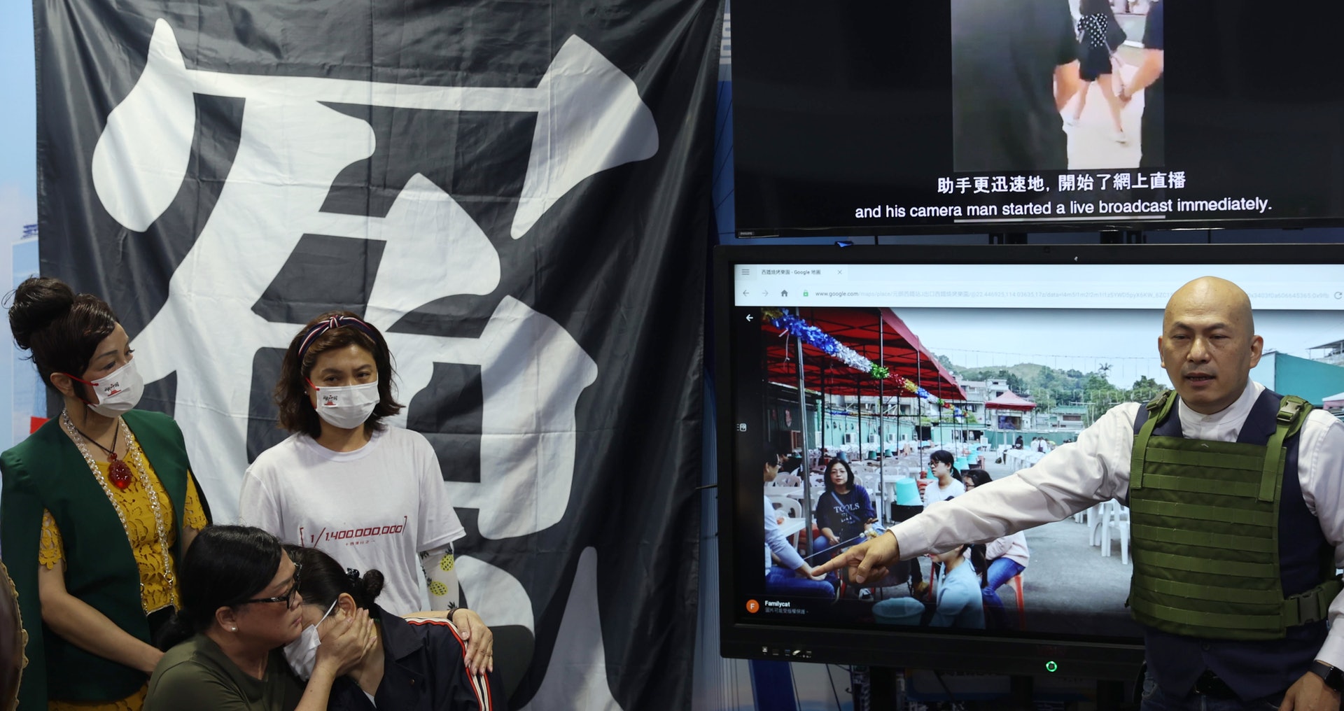 721白衣人暴動案,鄧懷琛被判囚七年,太太開記招喊冤,稱是「六月飛霜」。她情緒激動多次落淚。(余俊亮攝)