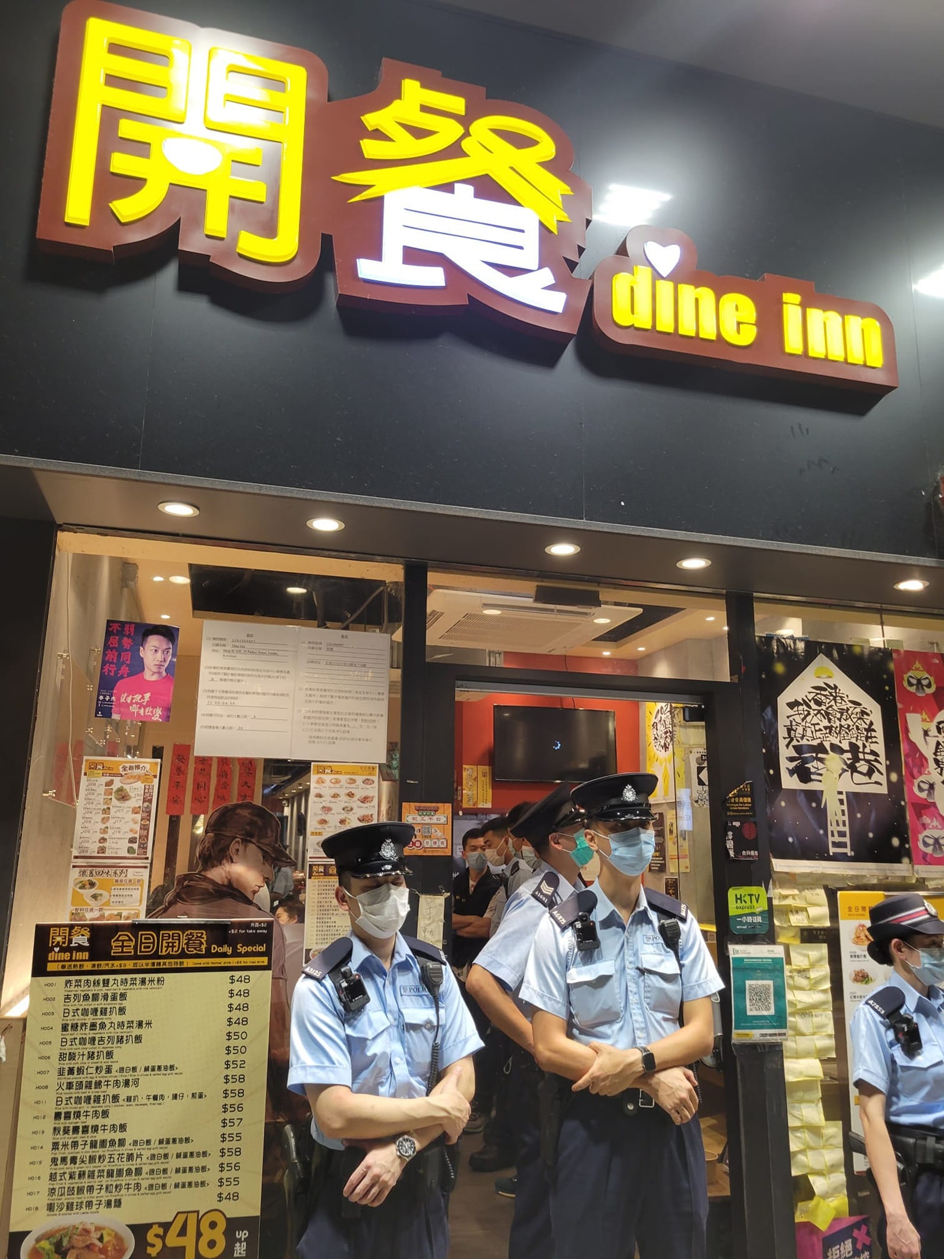 1 {0 k" p$ K' F( I3 wTVBNOW 含有熱門話題,最新最快電視,軟體,遊戲,電影,動漫及日常生活及興趣交流等資訊。開餐佐敦店9月4日晚6時許被警員檢查,其後被指有堂食客填寫資料有問題,分店被禁止堂食14日。(「開餐 Dine Inn」Facebook圖片)