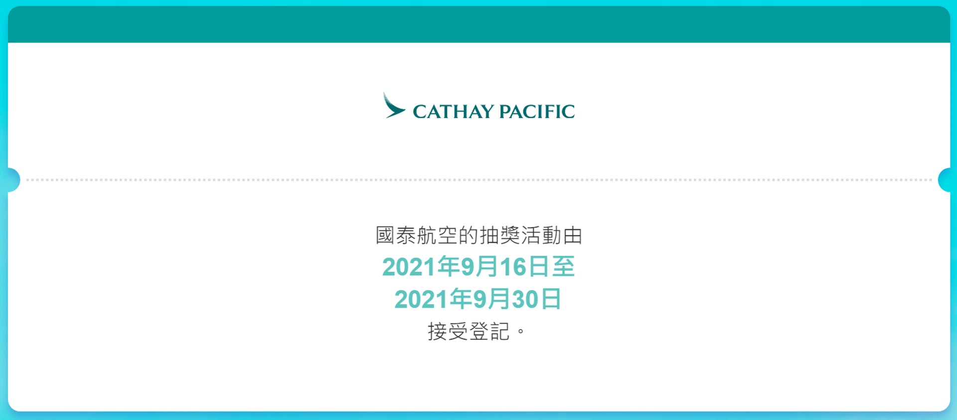 由於各地仍有旅遊限制及檢疫要求,航空公司會待相關情況穩定時,例如隔離檢疫措施放寬後,向得獎者發放兌換機票的代碼。中獎所得的機票不可轉讓他人,亦不可兌換現金、亞洲萬里通積分或其他形式的禮物。 |