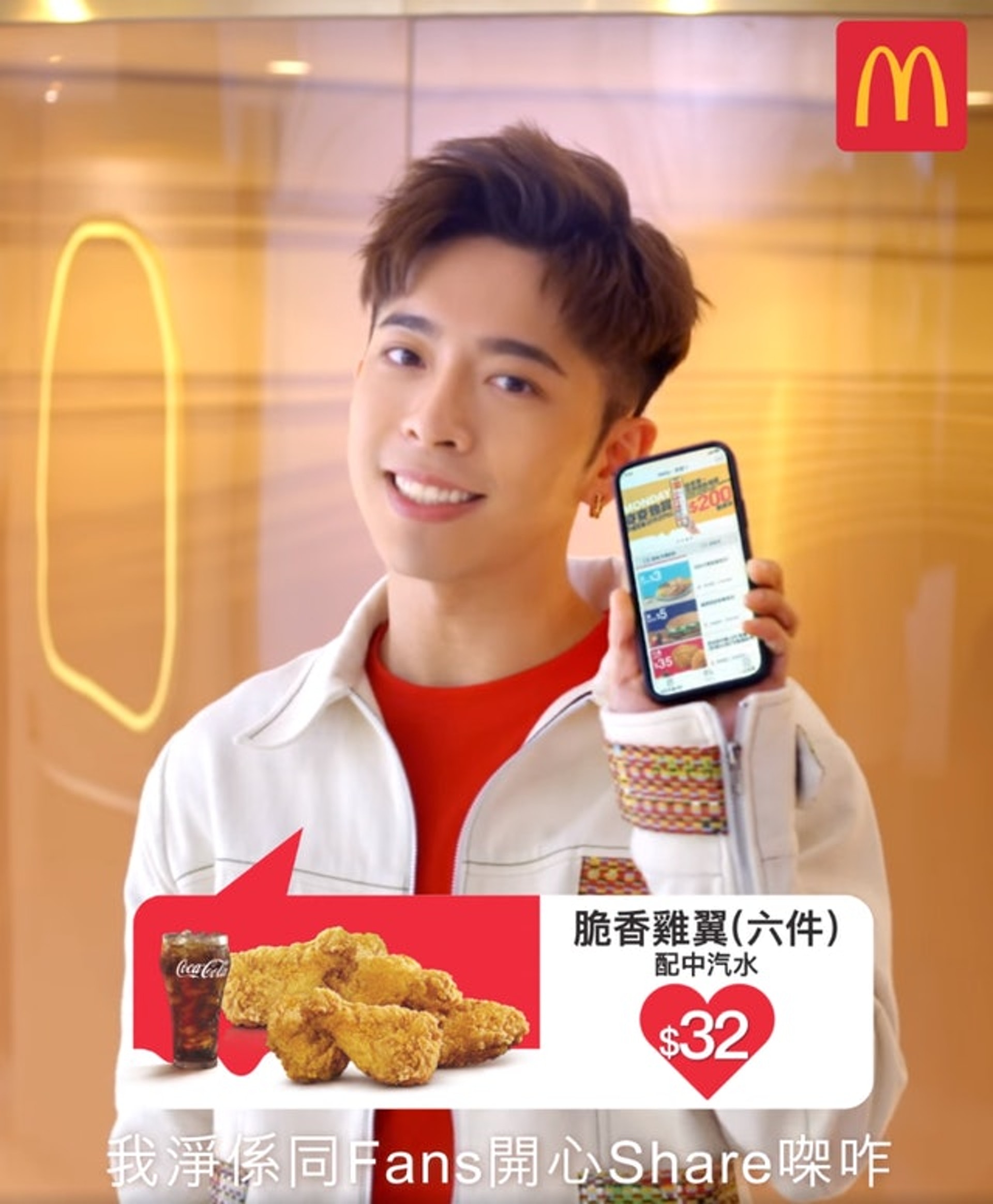 4 v/ w) B+ e, l) _% J5 w$ g3 v) d6 _公仔箱論壇麥當勞早前以Mirror成員Edan拍攝的廣告影片宣傳脆香雞翼,惟其後雞翼一度暫停供應。(麥當勞fb影片截圖)