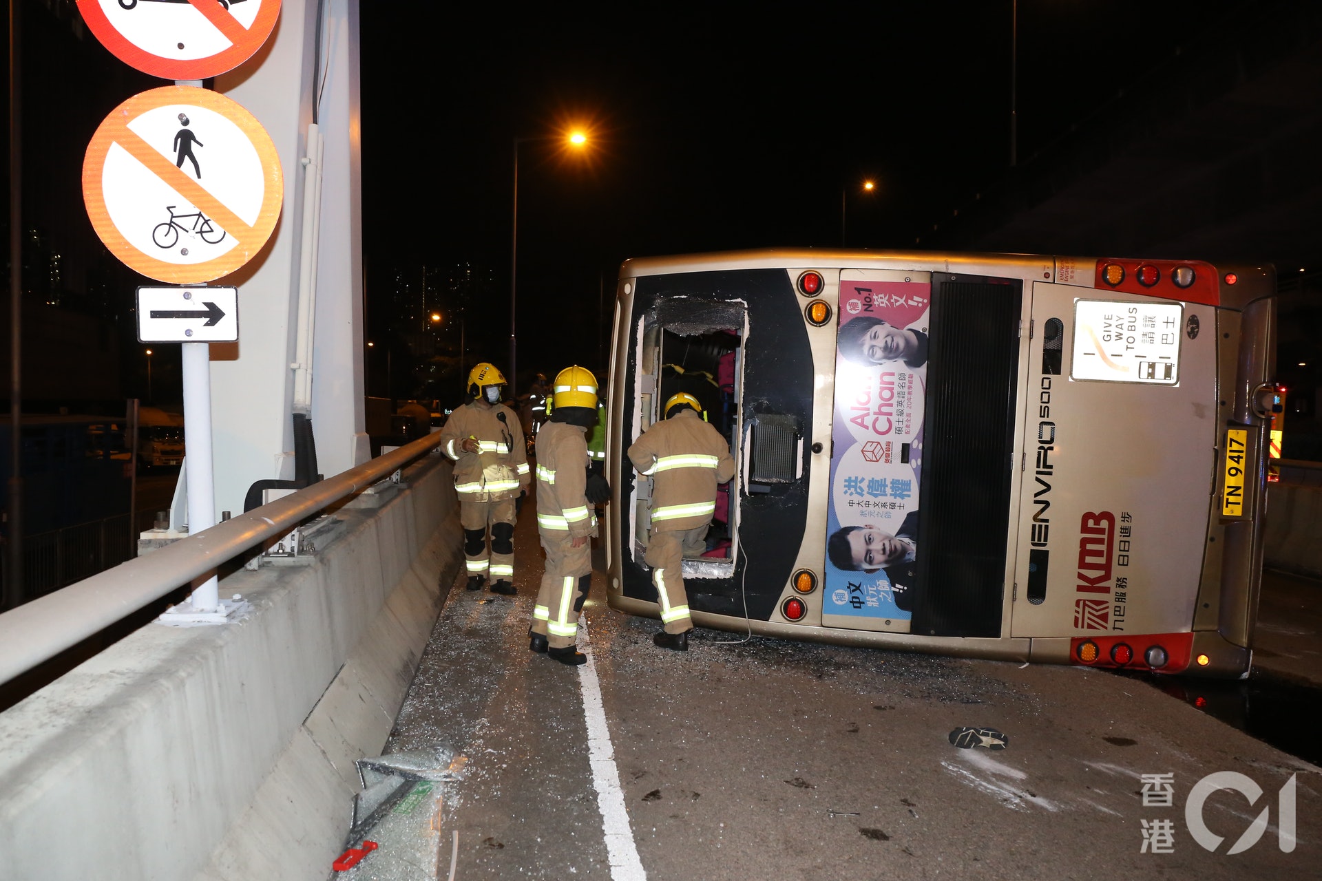 2 f4 X! T; g5 K- S6 a; T大圍翻九巴│88K線巴士疑行錯路急扭軚 撞壆翻側致1死11傷~