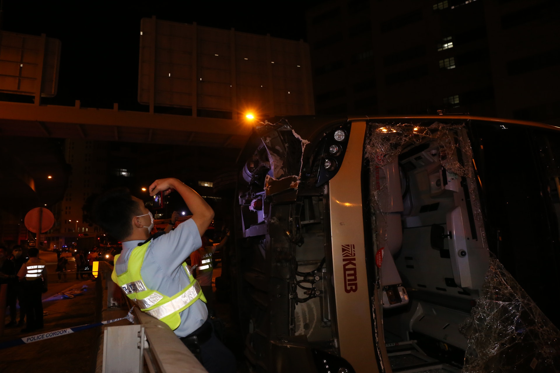 【00:30】一名協助救人的的士司機梁先生稱,當時駕車途經上址,「一嚟到見到無人,巴士訓咗喺度」,梁先生表示即時「停車衝埋去(救人)」,其後發現巴士司機已離開車廂站於巴士旁,「六神無主,企咗埋一邊」,梁當時與另外數名司機及附近的貨倉職員,分工合作於車頭及車尾協助扶出傷者,「有個後生仔成身血,另一個女士成手血,其他人都係撞傷為主」,而死者則是坐於上層坐位,頭部被車身壓住。梁先生指自己為夜更司機,但於事發後心情仍未平復,暫時未打算開車上班。