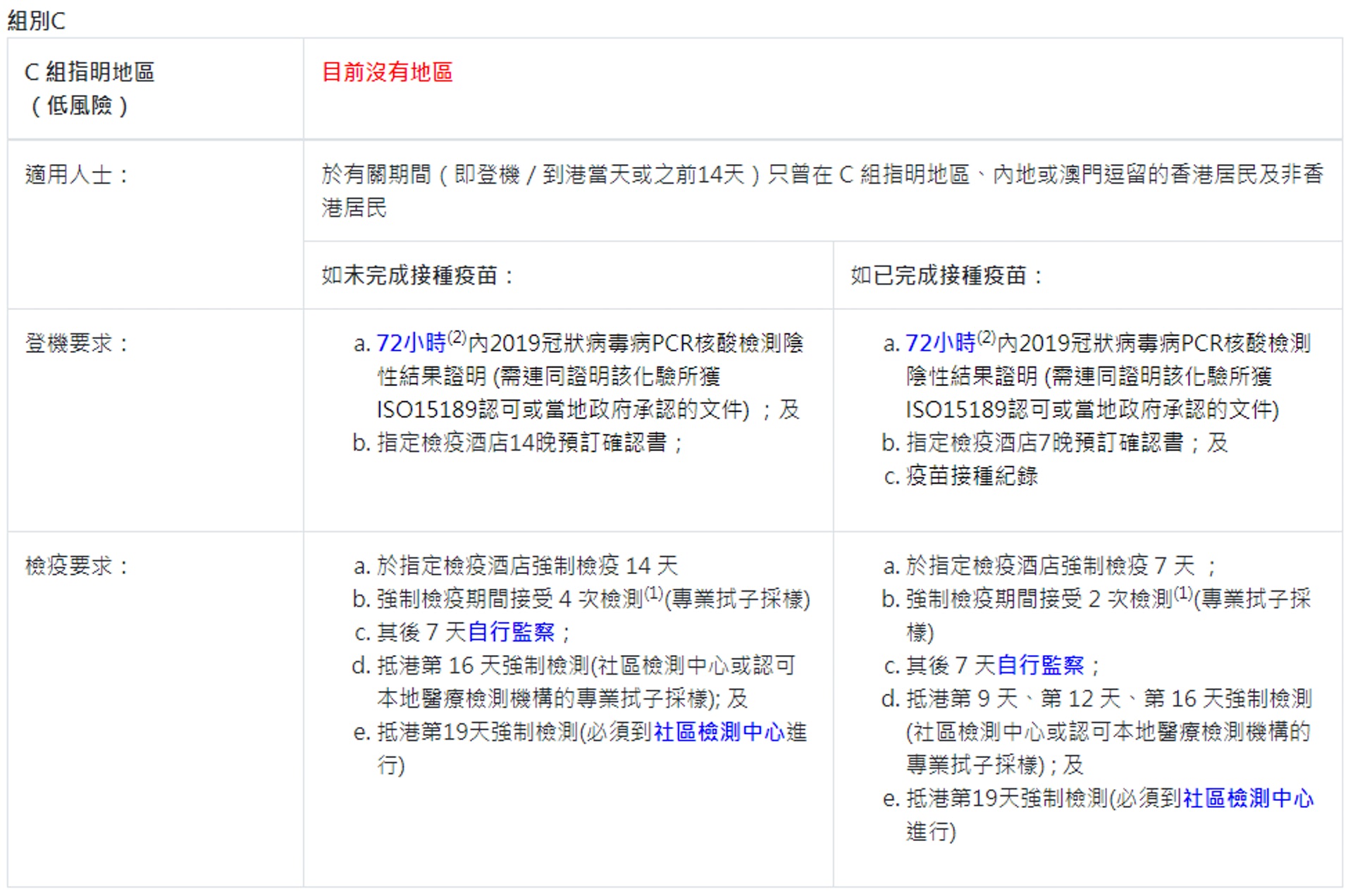 至於發現有Omicron輸入個案的九個國家亦將在下月二日凌晨零時起,列為A組指明地區,包括澳洲、奧地利、比利時、加拿大、捷克、丹麥、德國、以色列及意大利,於二十一天內曾逗留當地的非香港居民不獲准入境,而完成接種疫苗的相關香港居民,抵港後於指定檢疫酒店接受二十一天強制檢疫。