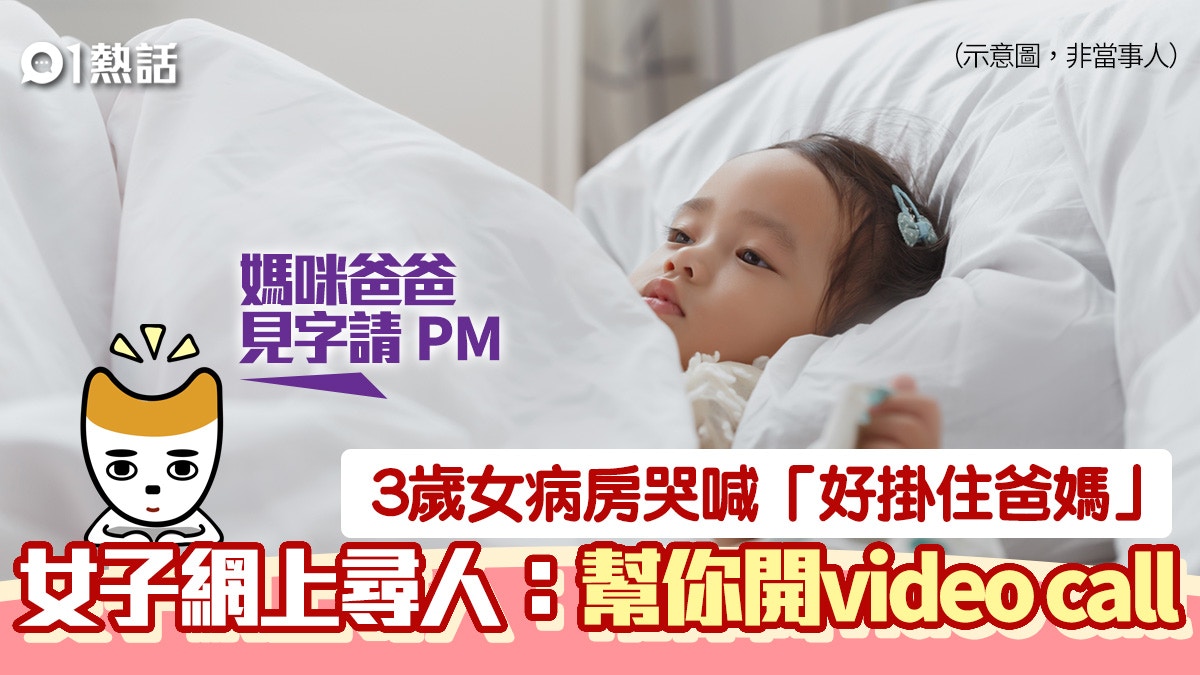 0 Y% G/ b! p& p: E9 u3 ytvb now,tvbnow,bttvb在疫情下,本港公立醫院由今年1月7日起已暫停探訪安排,只有恩恤原因獲個別考慮。1名女子今早(6日)在facebook公開發文,表示屯門醫院內某隔離病房內,有年僅3歲的小妹妹不停大哭,「囡囡喊住話好掛住你」,希望小妹妹的父母看到帖文能聯絡她,又指可以幫忙打視像通話(video call),暖舉獲大批網民激讚,而最終亦成功聯絡到該名媽媽。