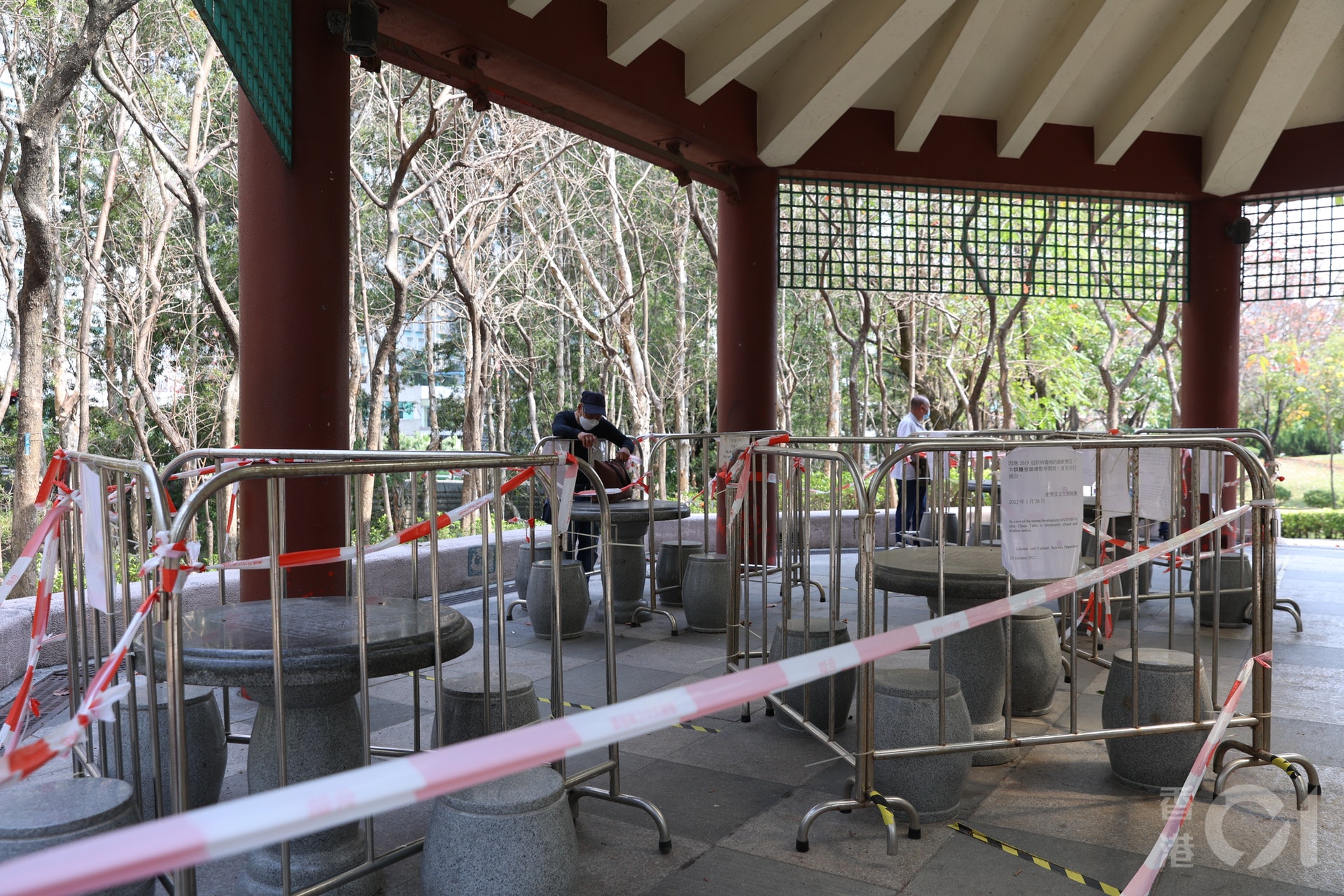 * d. `6 _3 G1 D7 x+ d/ Z9 [第五波疫情持續兩個半月仍嚴峻,市民減少外出,3月15日所見,公園的設施被圍封。(鄭子峰攝)4 N: q* S: M6 u