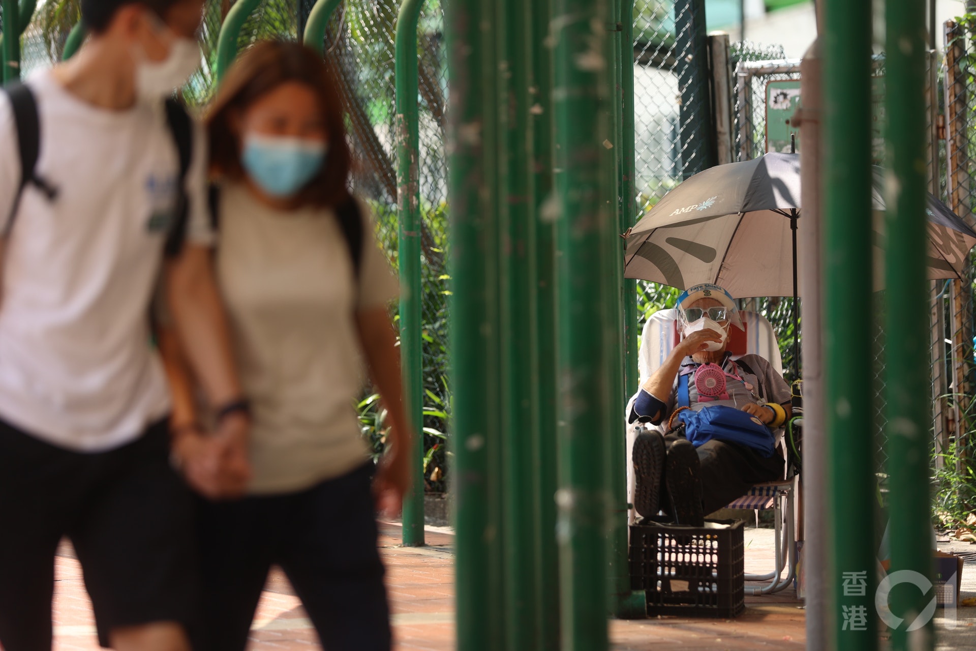 第五波疫情持續兩個半月仍嚴峻,限聚令最多2人,3月15日所見,有市民在公園行棋。(鄭子峰攝)% C% h' M8 i' Y