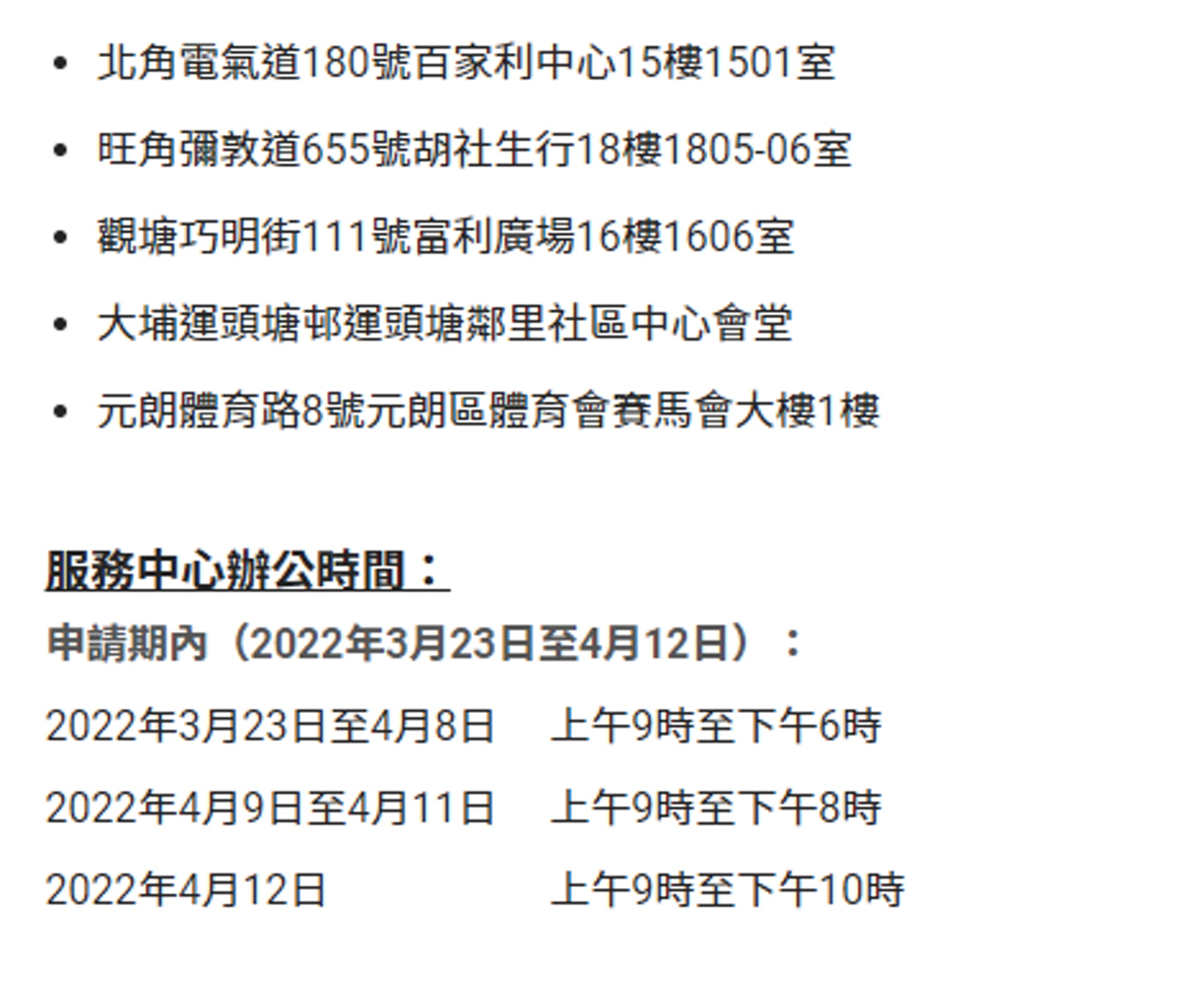 ) Q5 a# P% c9 E% f! W& v; a需透過熱線:1836-128預約,並在預約時段內前往以下服務中心! X& b0 M1 K9 q* v' c7 T1 P