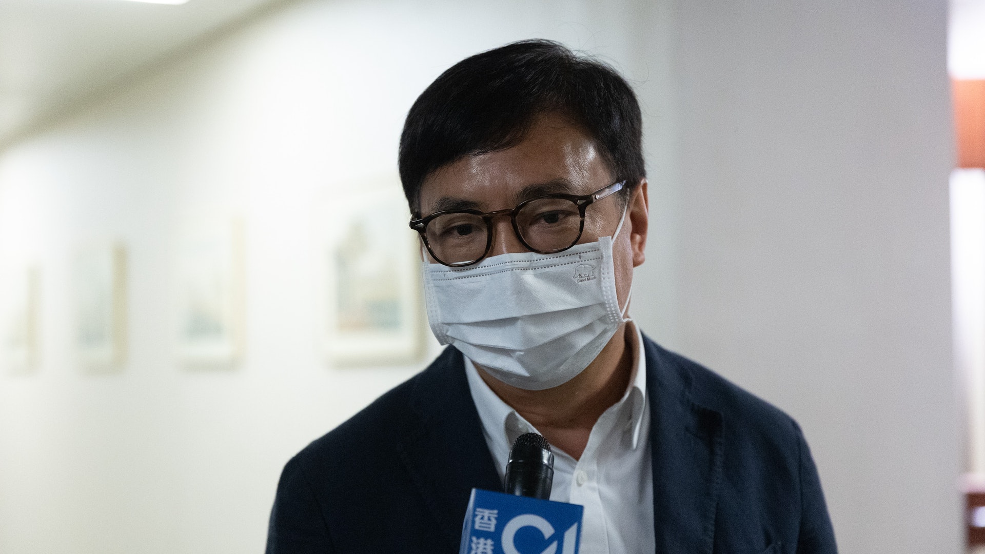 李家超於行會通過架構重組方案後見記者。(張浩維攝)
