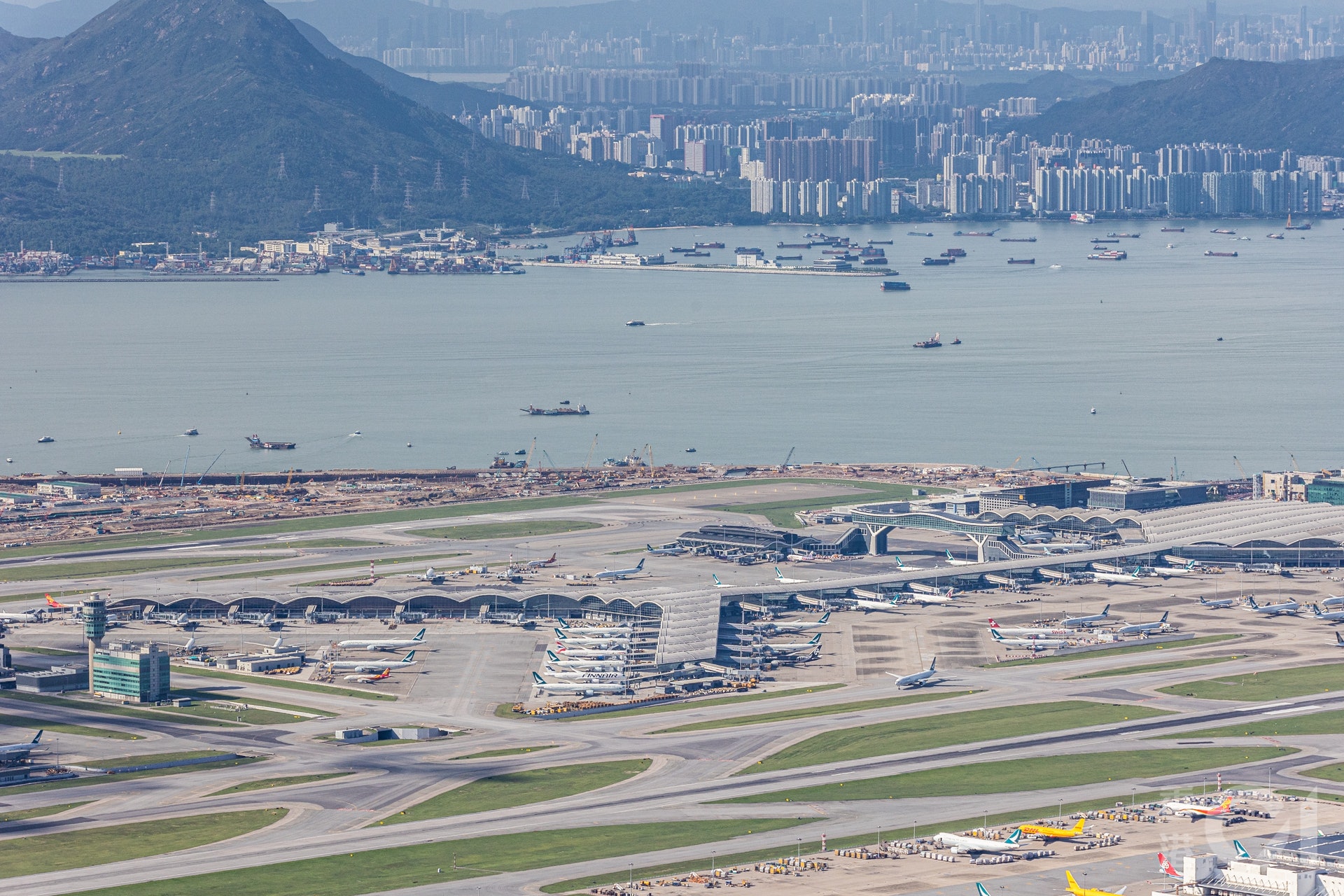 三跑啟用|赤鱲角香港國際機場的第三跑道7月8日啟用,早上有多架飛機使用三跑升降。(梁鵬威攝)