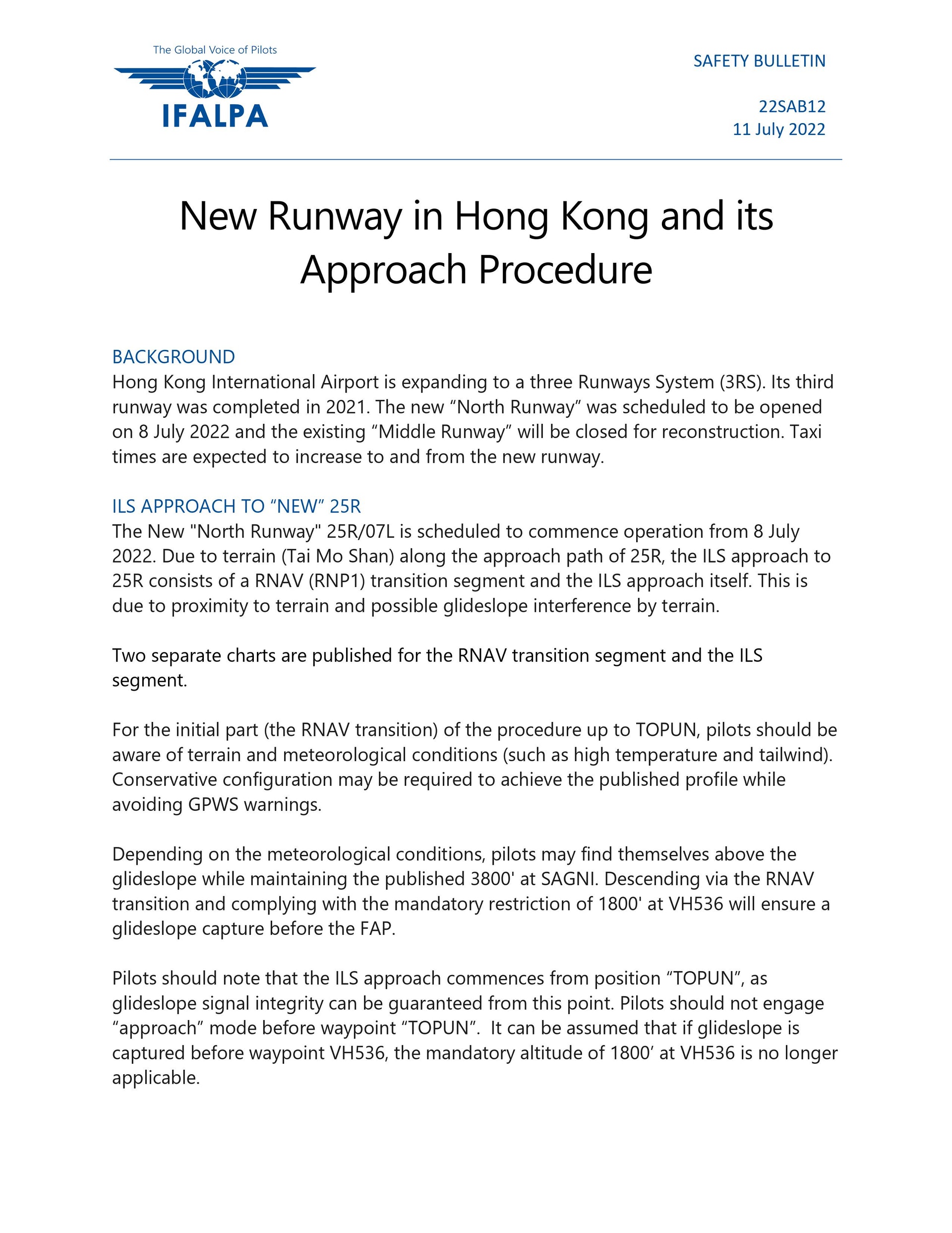 他又說,國際機師聯合會通常會在機師反映問題後發安全通知,亦得知有機師稱轉用三跑新航道,涉及重新調校一些設定,程序上有所不同,機師可能因手勢習慣等問題感「not comfortable(不舒服)」。今次安全通知更表明,一些航圖未能顯示新的程序,不幸地有關航圖為最多機師使用的牌子。