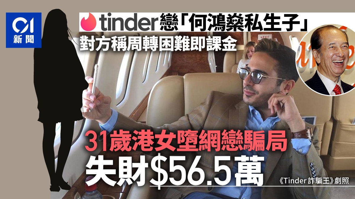 一名31歲本地女子,本月初透過交友程式Tinder遇上自稱是已故賭王何鴻燊私生子的男子,對方自稱經營船務生意﹐兩人雖從來未見過面,但在一星期內火速發展成為網上情人。女方以為戀上有錢人,其實陷入網上情緣騙局一度懵然不知,結果被騙走56.5萬元。公仔箱論壇! `% @0 u2 X+ \