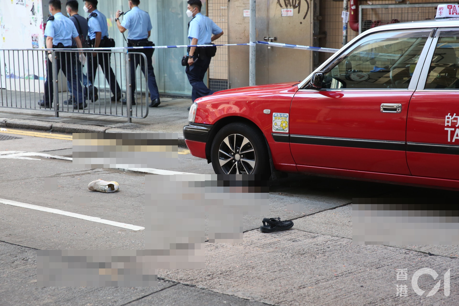 " [+ ]8 n* ~7 c* ?1 e5 G' `兩名死者的鞋飛脫。(王譯揚攝)