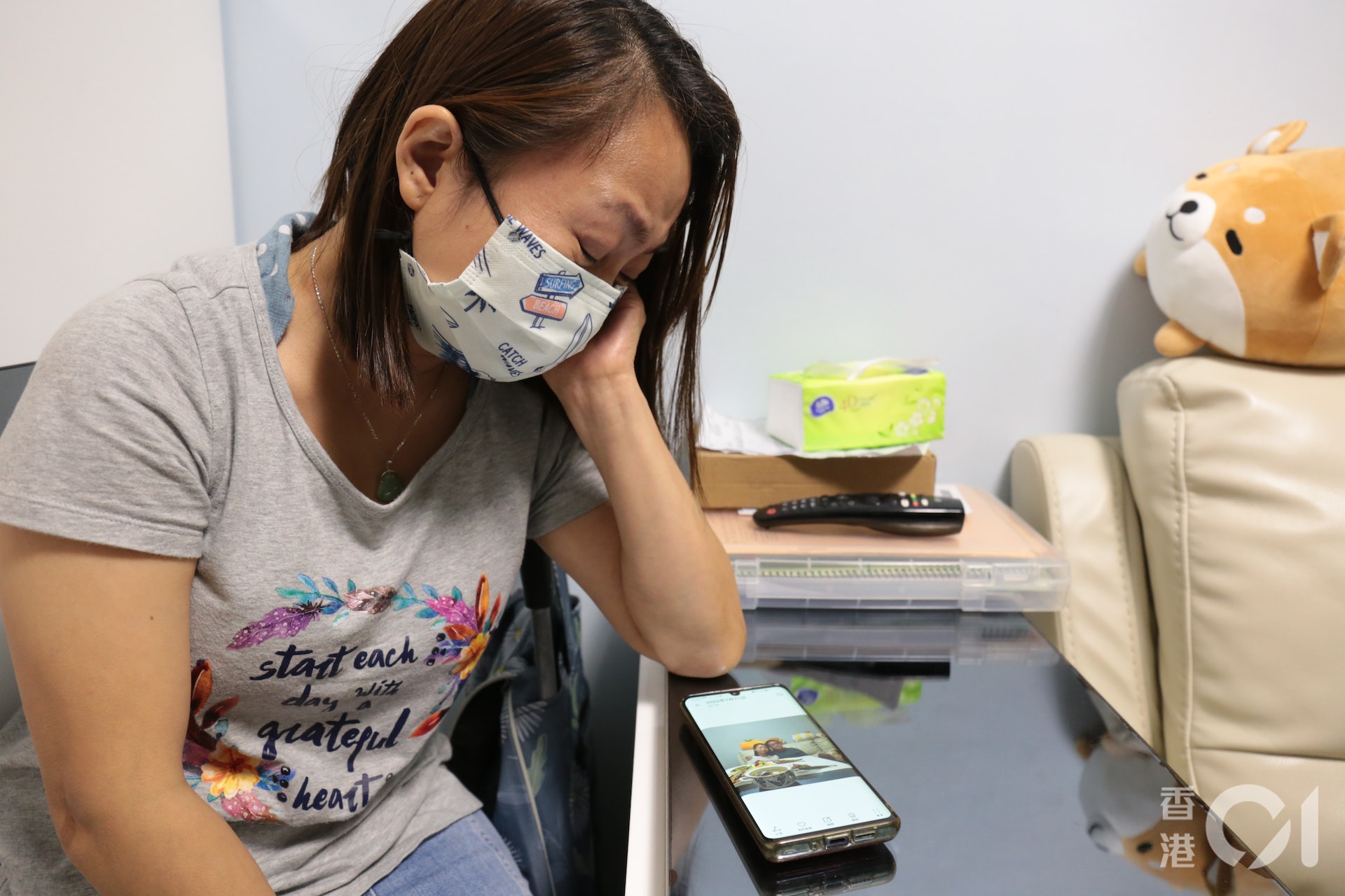 ) i+ L: s. ~! Q+ e, e4 B; E公仔箱論壇陳妻看着丈夫昔日與女兒一同慶生的合照,不禁悲從中來,泣不成聲。(梁偉權攝)3 x0 o# b3 E+ A' v7 a9 ]# a