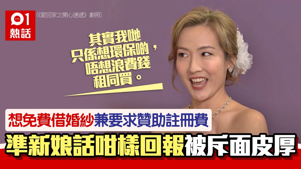 有婚紗店最近發文分享「趣事」,指有準新娘查詢免費義租婚紗的詳情,表示「想環保啲」希望能借用婚紗數小時,更問店方會否提供結婚註冊費用。(《愛回家之開心速遞》劇照)os.tvboxnow.com/ l/ t; L [2 F7 r