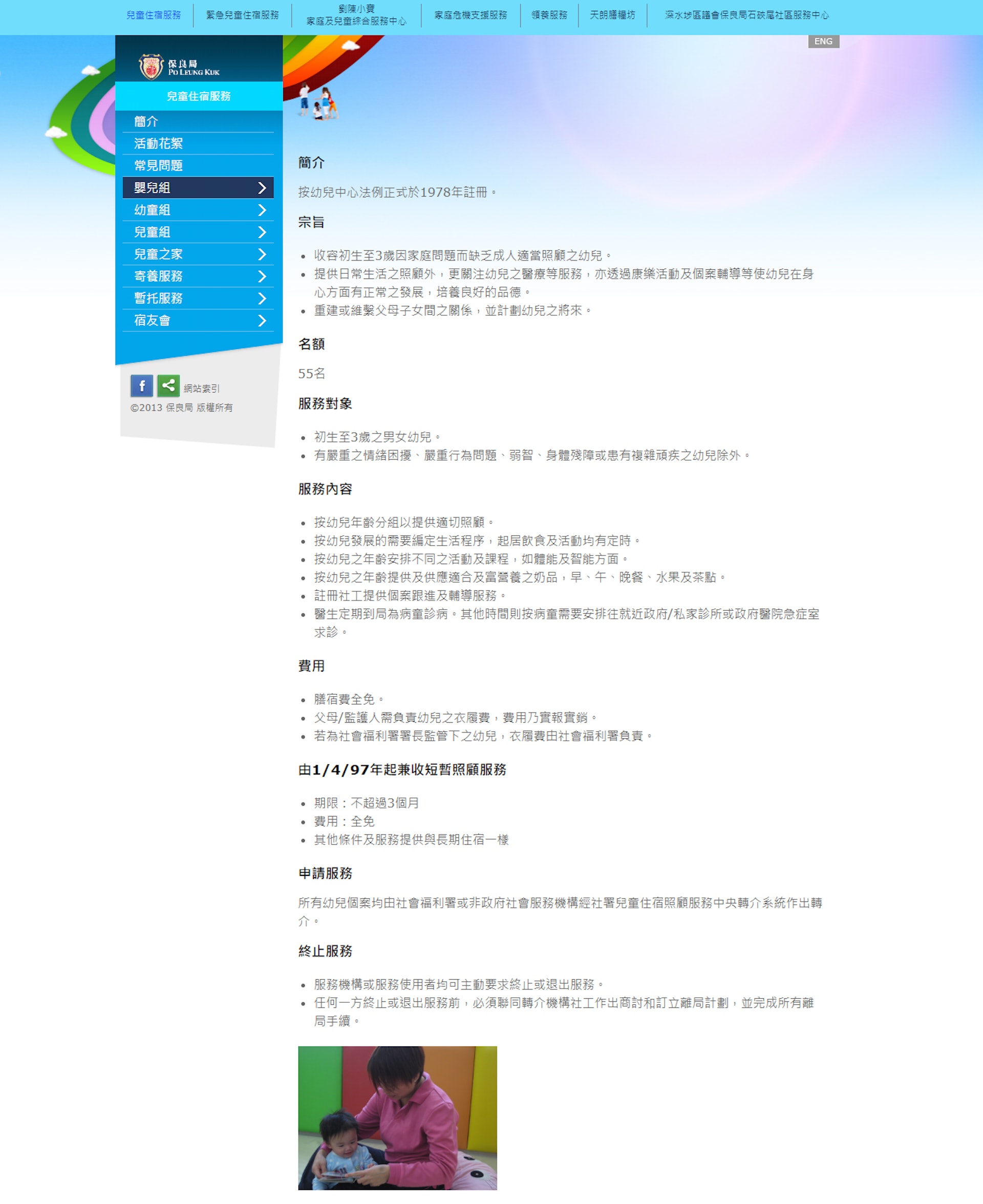 $ |- n8 v- R) W- _os.tvboxnow.com翻查保良局官網,保良局嬰兒組主要收容初生至3歲因家庭問題而缺乏成人適當照顧的幼兒,合共提供55個名額。(保良局官網截圖); D) E+ _% z7 L! p, f( Q7 T