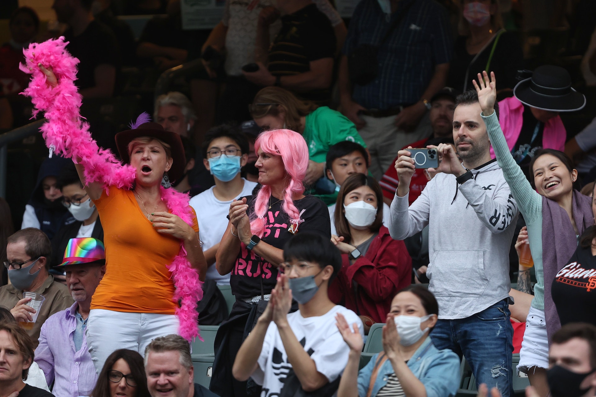 4 C4 c* {. J% L- Q1 q; e, _7 ?tvb now,tvbnow,bttvb一連三日舉行的香港國際七人欖球賽11月4日開鑼,入場觀眾歡呼喝采,把口罩忘掉。(張浩維攝)
