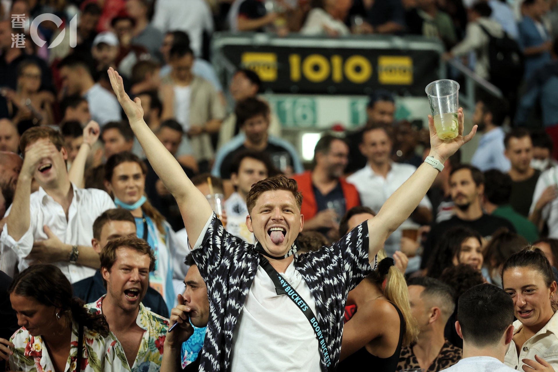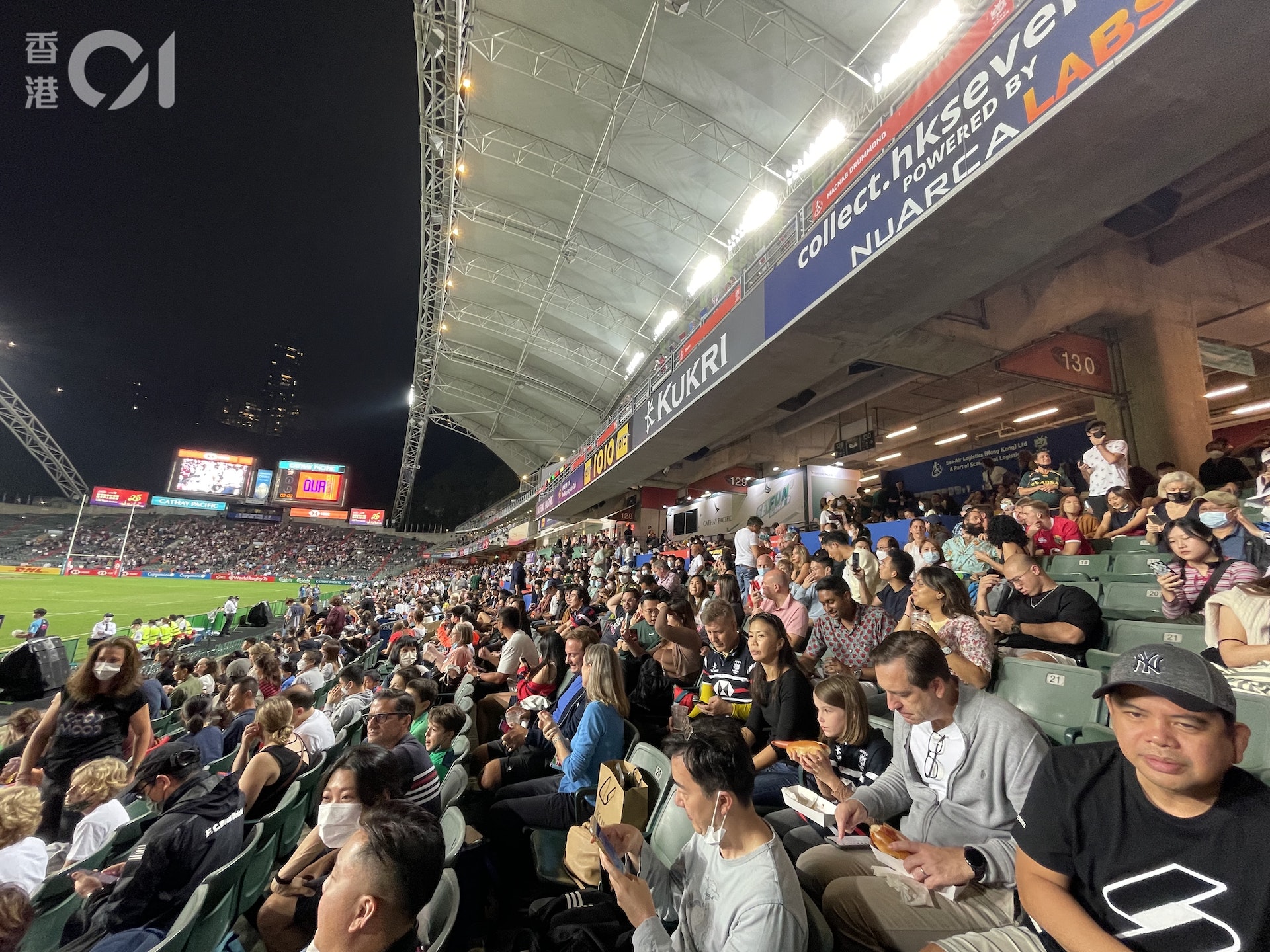 ( t) s2 f. t, r2 @8 O. O% Ios.tvboxnow.com香港國際七人欖球賽闊別兩年多後,今日(4日)起一連三日終在香港大球場復辦。首日港隊壓軸在最後一場賽事,與勁旅澳洲隊對戰,看台上不少球迷舉杯暢飲,場面熱鬧,亦有不少人除下口罩打氣歡呼喝采。有觀看七欖逾廿載的球迷表示,很興奮終可再次入場,形容氣氛仍然高漲和精彩,惟參賽對伍大減,對此感到失望。