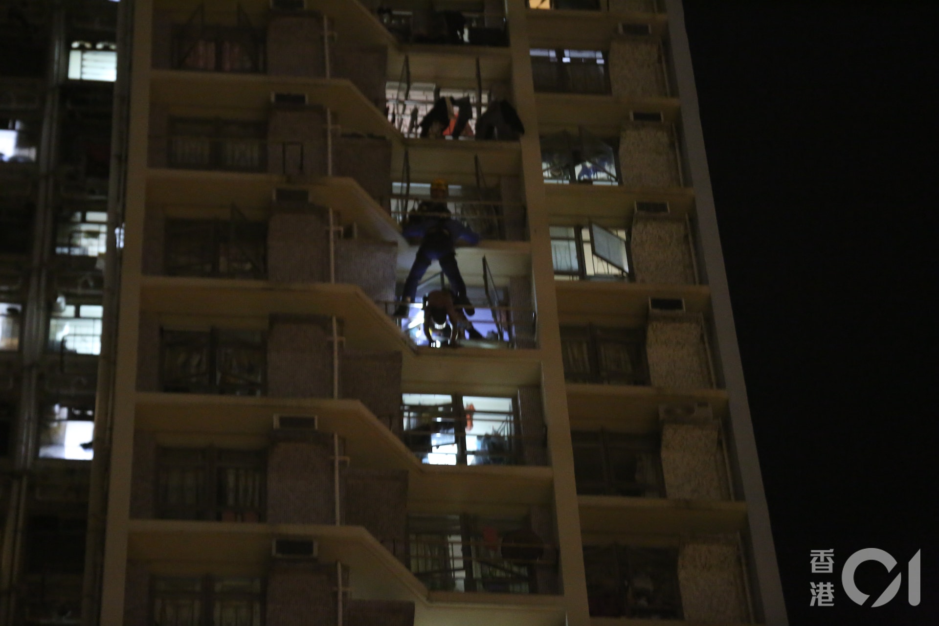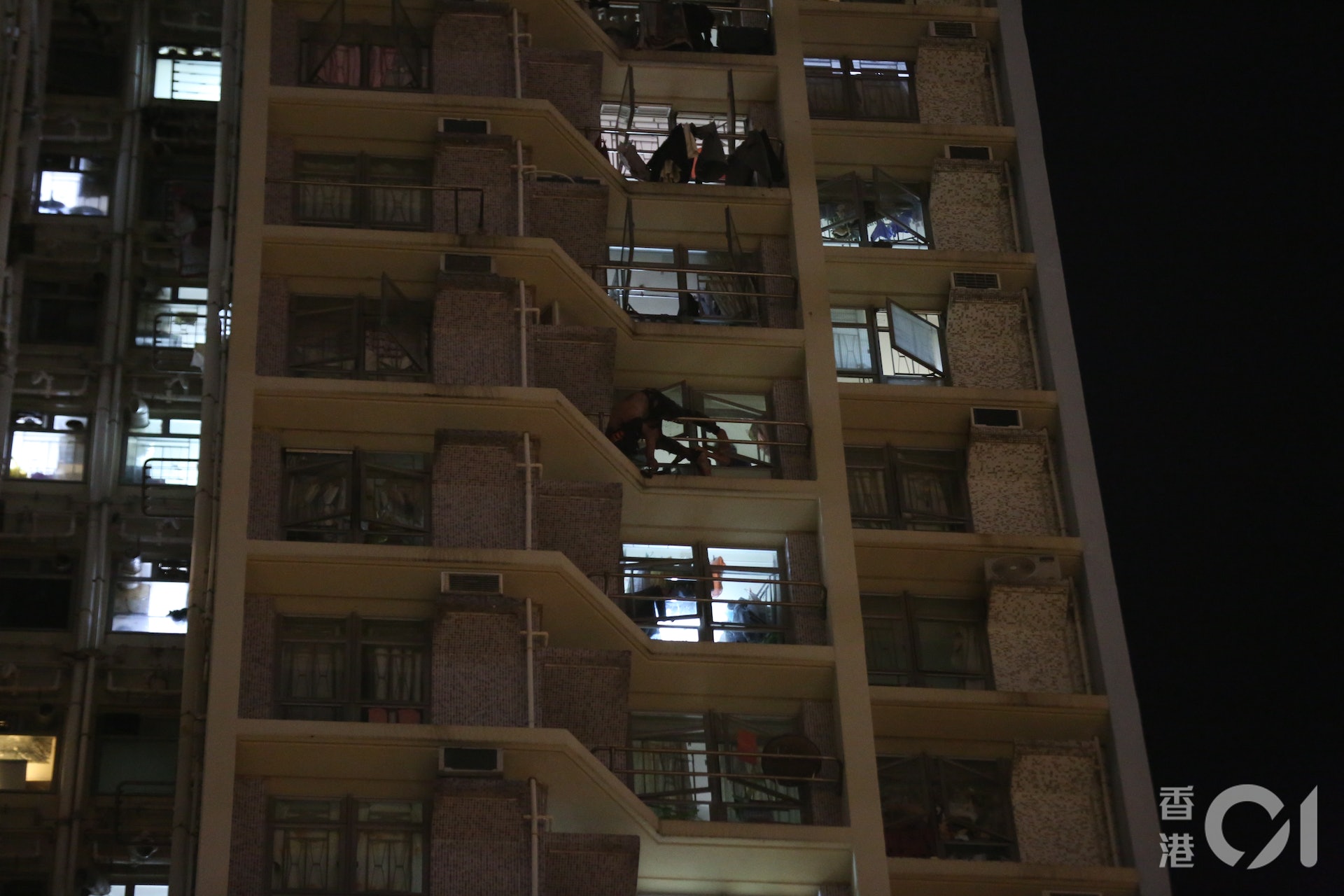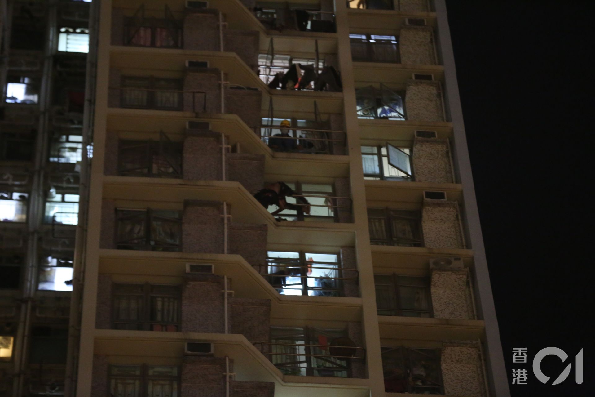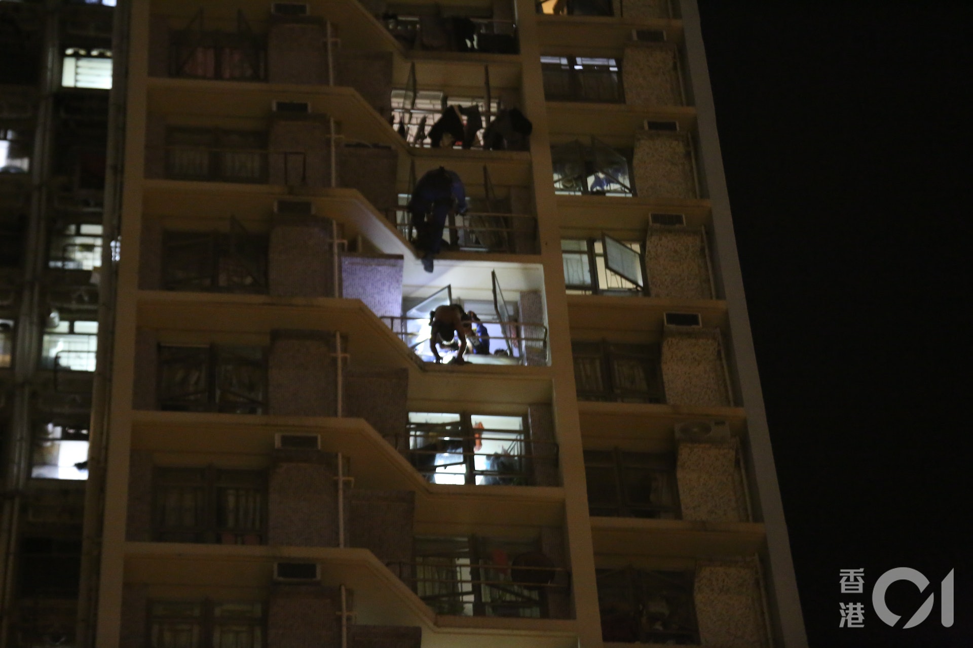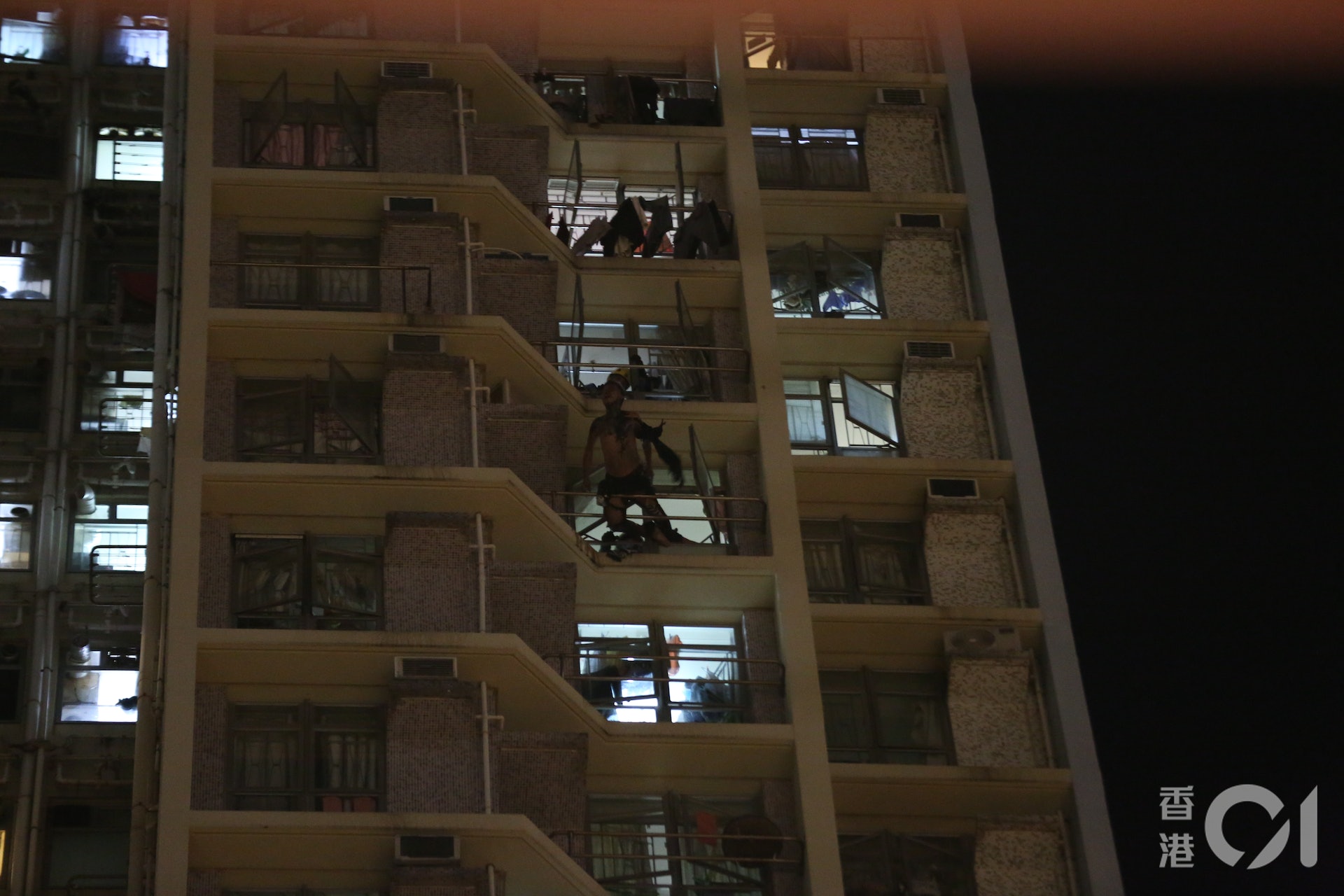 ' ]! Y6 i# \- I- l+ T7 G9 ftvb now,tvbnow,bttvb疑兇躺晾衫架與上層消防對望。(王譯揚攝)公仔箱論壇) T8 o4 V7 Z" w; m/ H