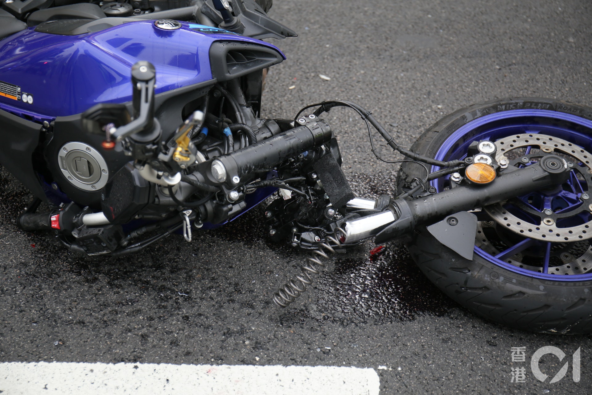 % o5 Q5 W, f# Y- m電單車損毀嚴重。(林朗天攝)公仔箱論壇- r( U" e% V! [$ v& B9 [$ a
