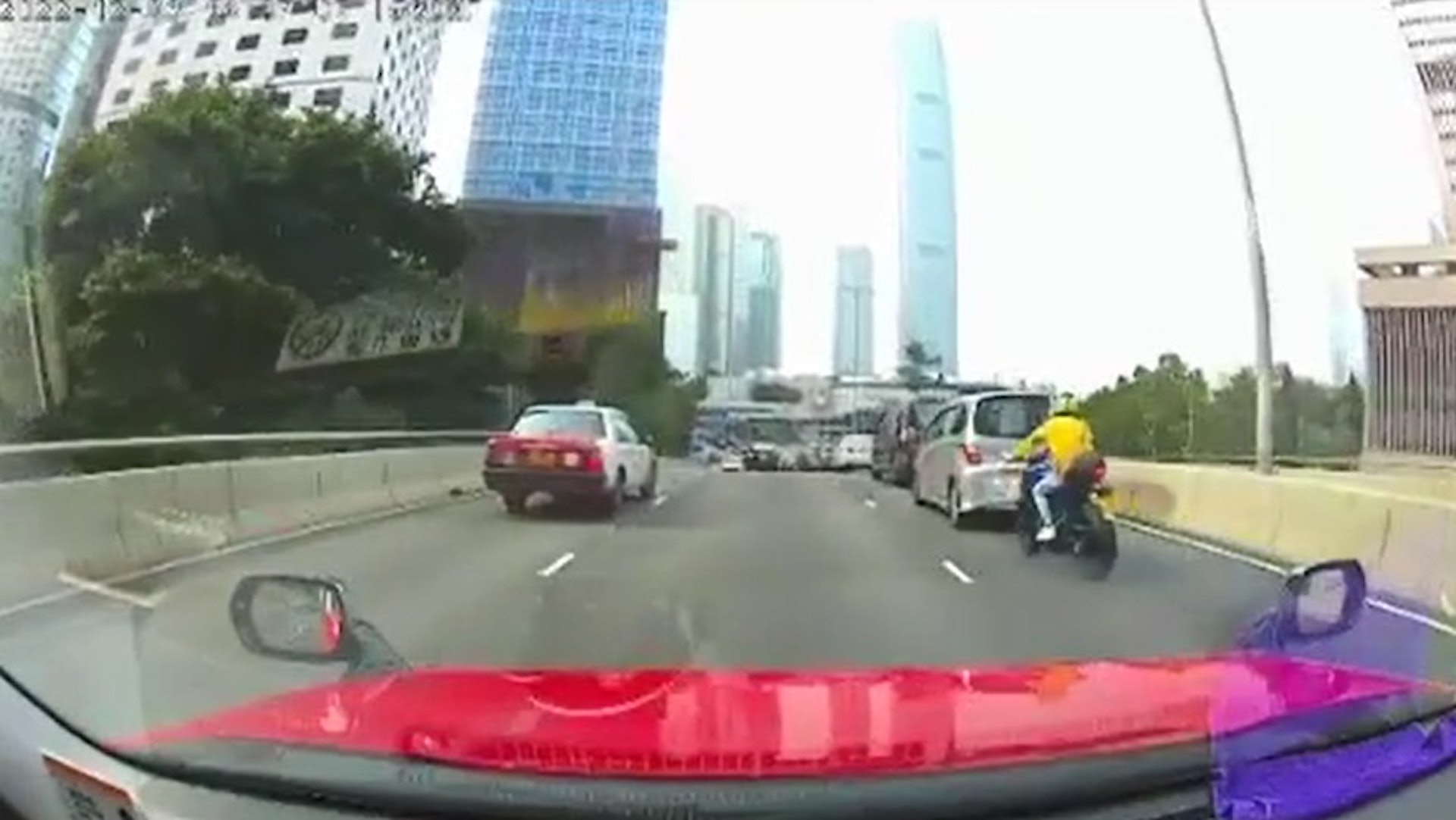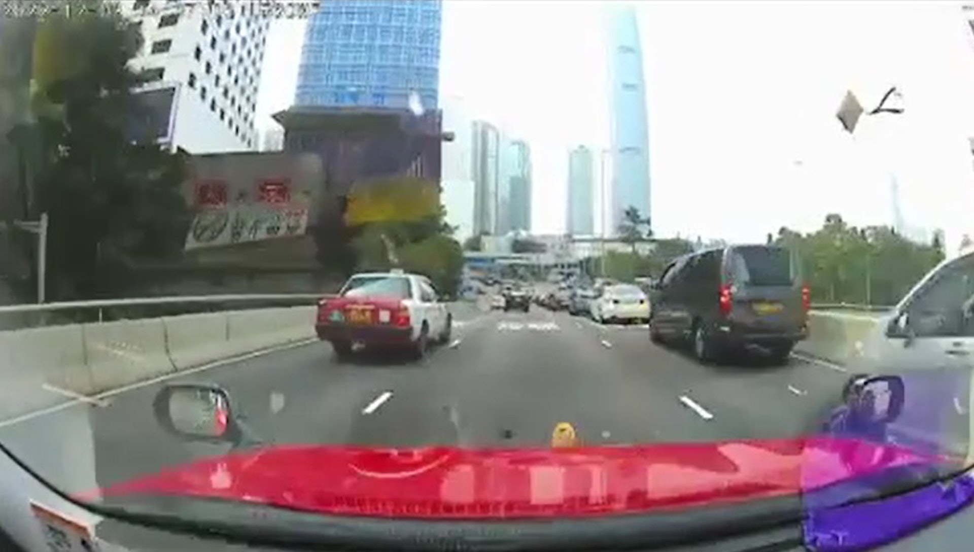 4 _9 |4 }8 Q4 Y0 X私家車因前方有車而減速。(網上影片截圖)