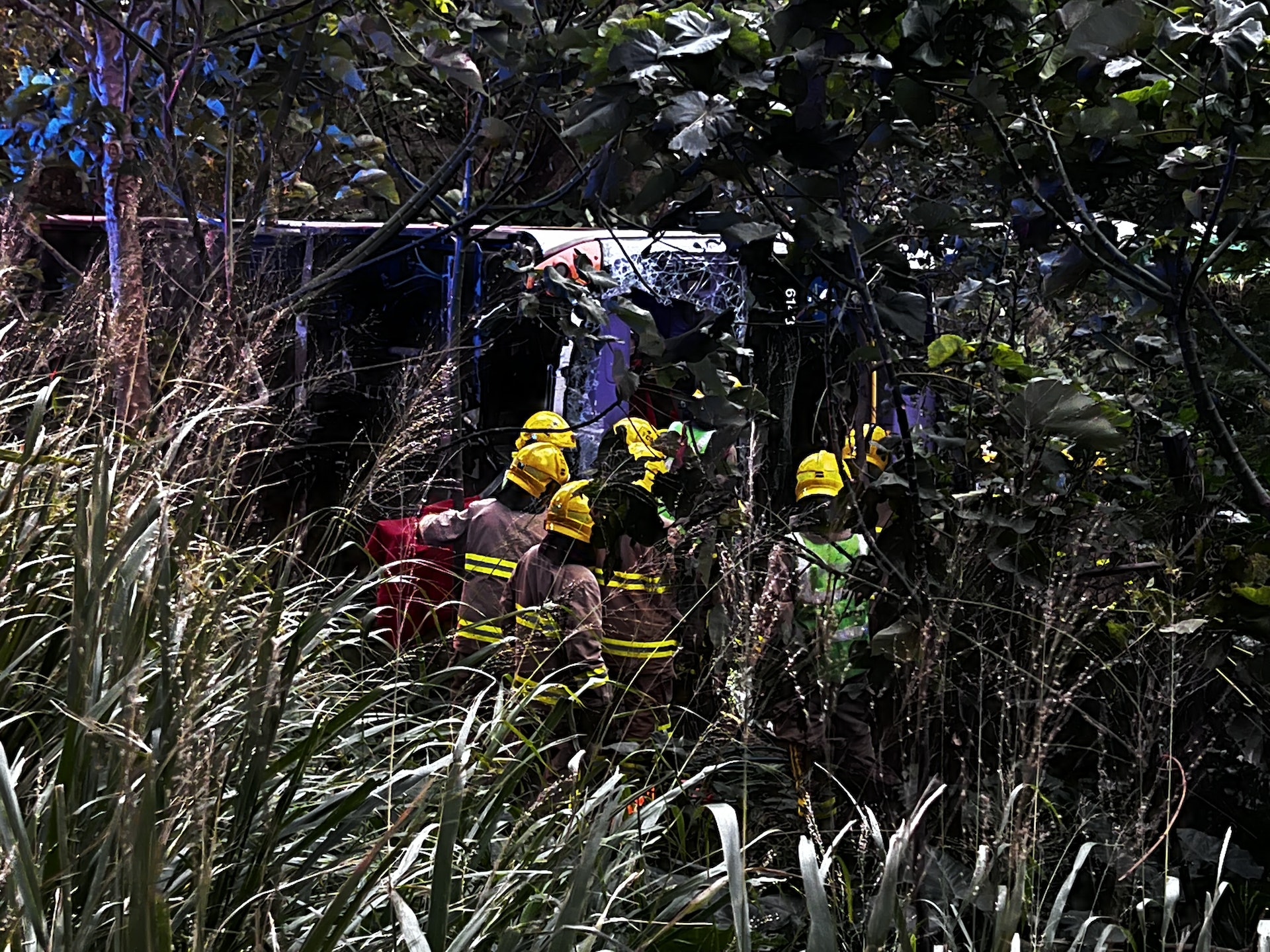 ' u7 X; j" g4 ^4 x$ A; a5 [tvb now,tvbnow,bttvb新巴796P駛至日出康城對開時失控翻側,消防到場救援。(朱永倫攝)