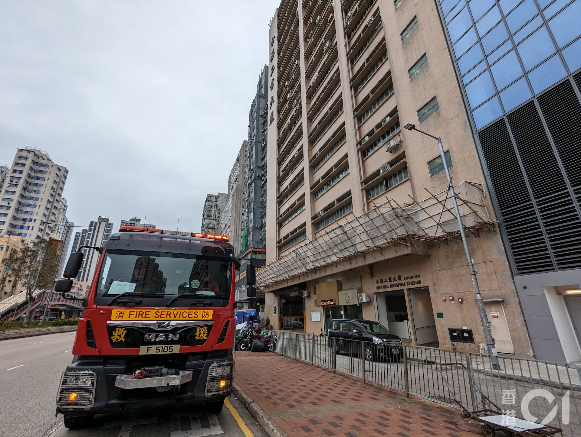 0 d. t$ [0 Q' x- f* r3 w公仔箱論壇警方及救護員接報到場,該名女工人昏迷不醒,由工友陪同送往仁濟醫院搶救。(楊嘉朗攝)os.tvboxnow.com8 ~; \3 F( J# G( I, U