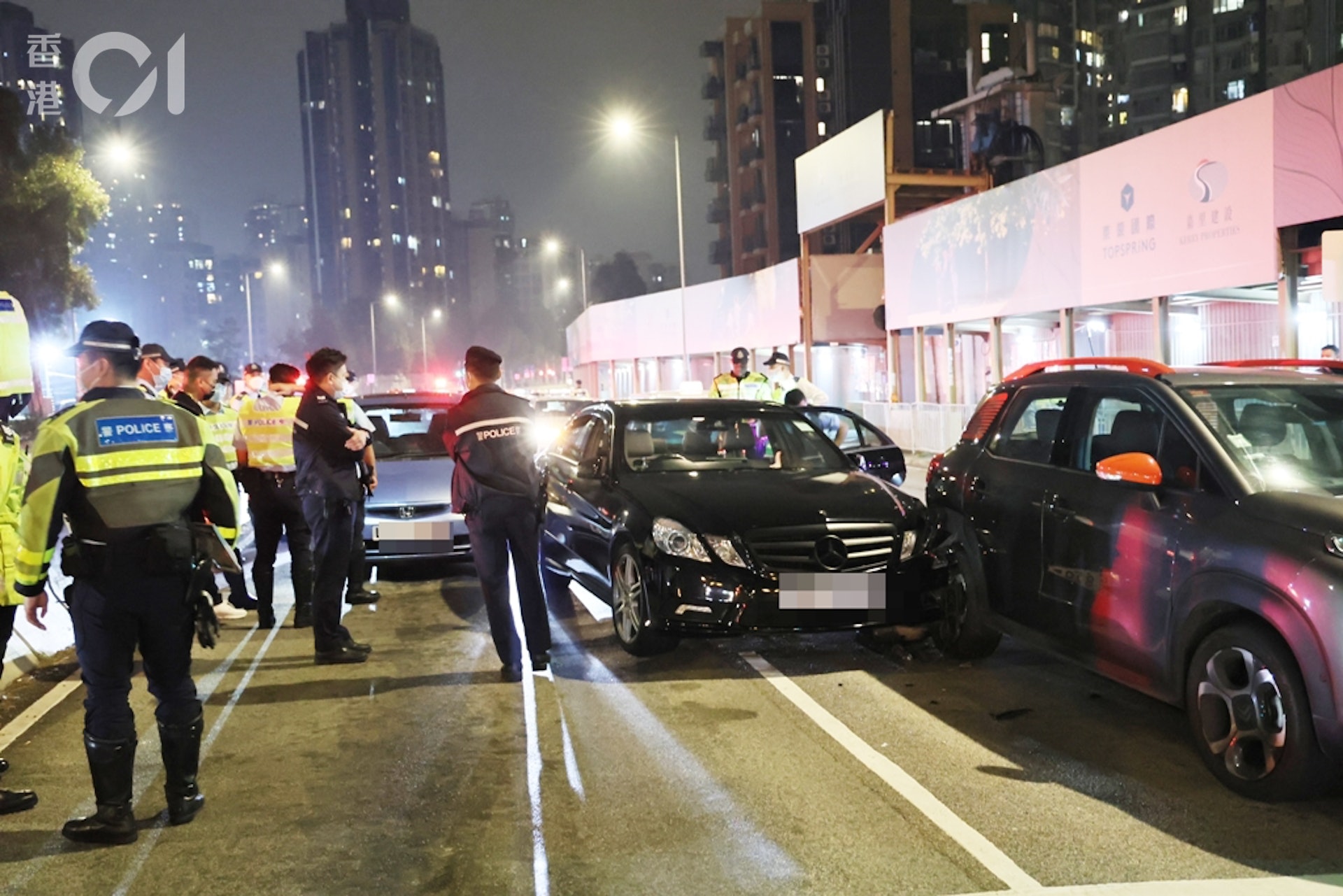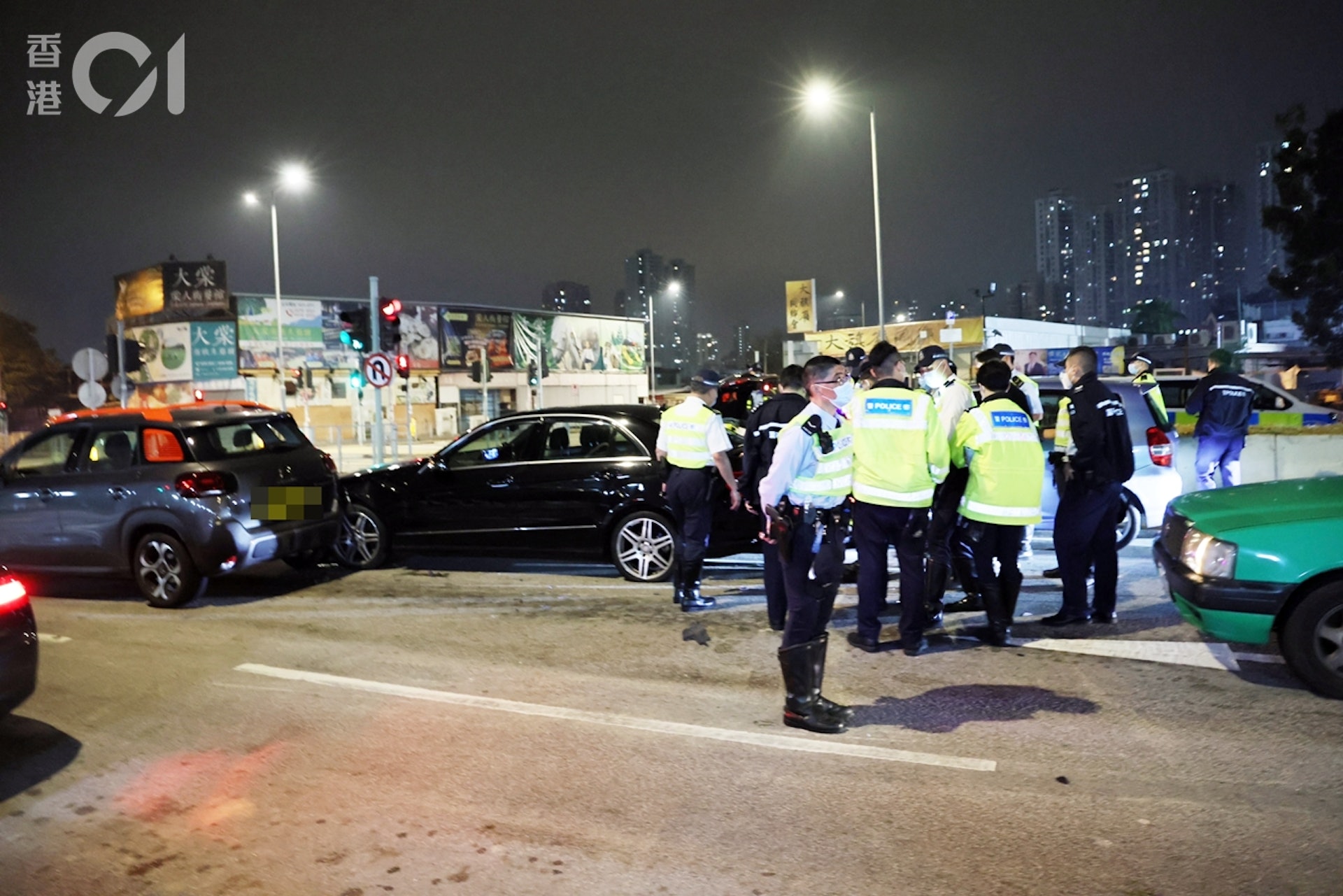 & y4 F9 }% I0 B至於無辜被撞的有3輛私家車及1輛的士,沒有人受傷。警方將案件交由新界北交通意外調查組跟進。