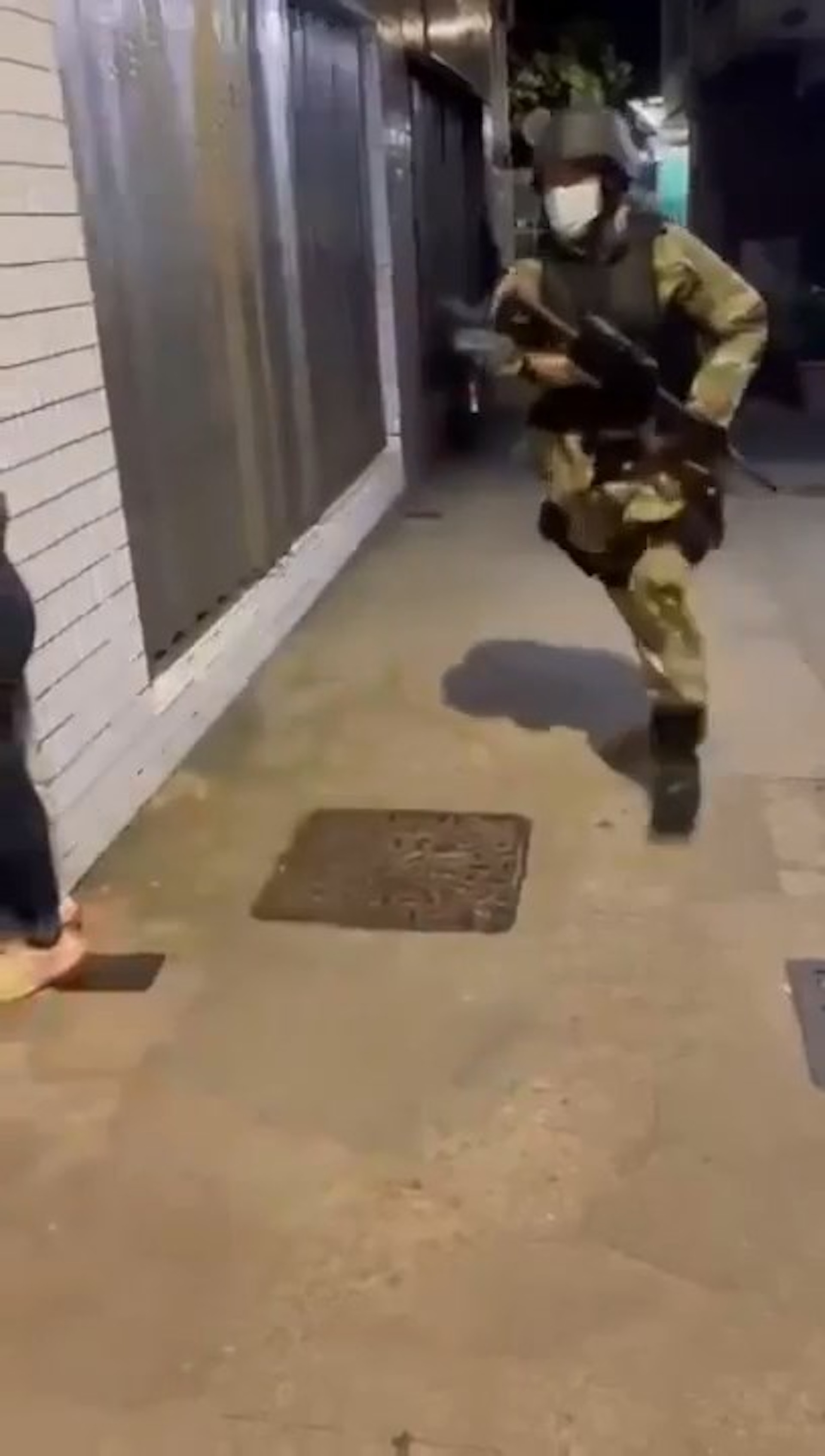 5 \* z3 J% ^4 B6 t$ x事後大批小艇分區(Small Boat Division 縮寫:SBDIV)警員身穿避彈衣、荷槍實彈在場搜查,情況緊張。(讀者提供影片截圖)公仔箱論壇) I( D) n7 D0 J! p3 C, W