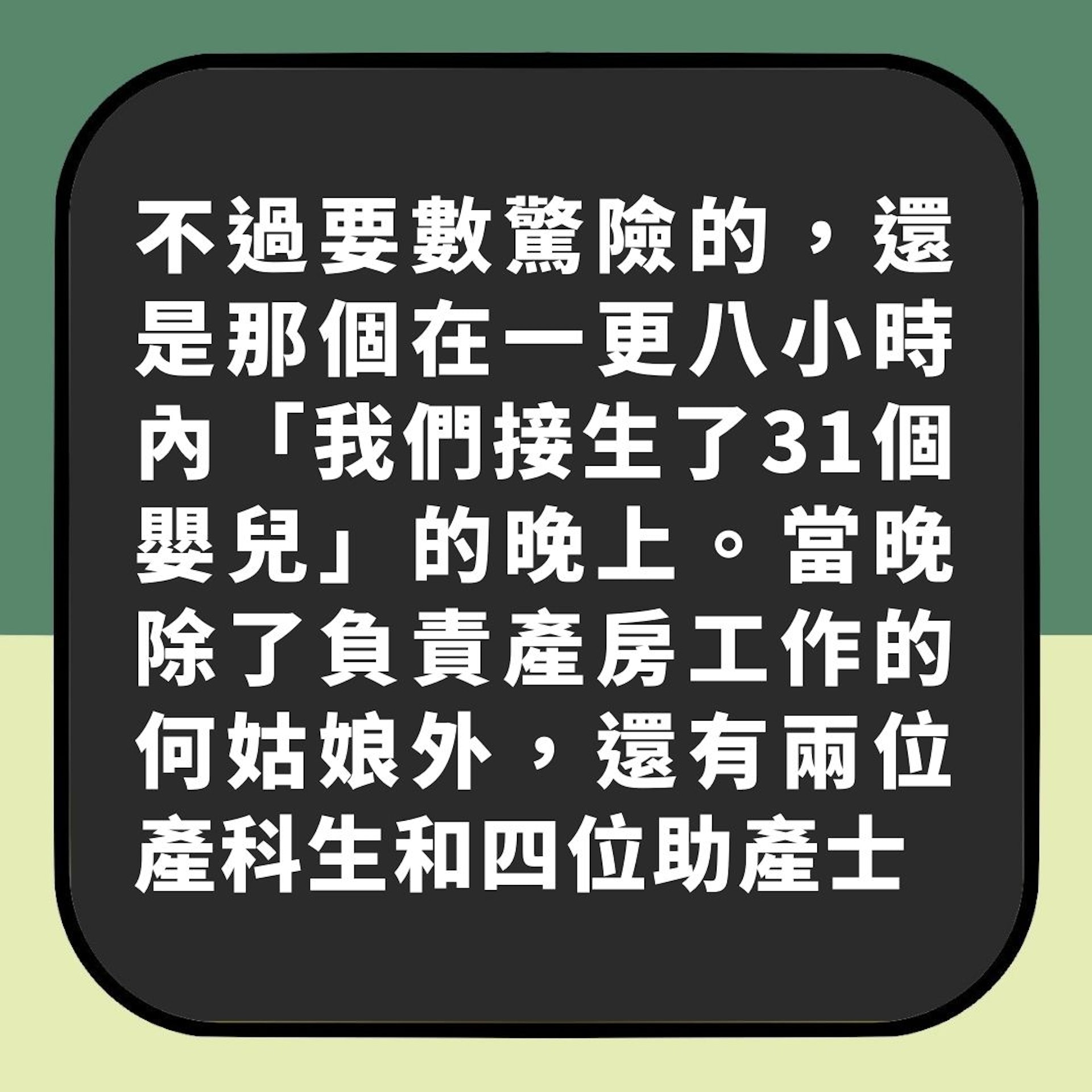 9 D! w' S) {8 Q, k難忘1晚接生31嬰兒經歷 BB床不夠要睡這裏(點圖放大閱讀精華節錄):
