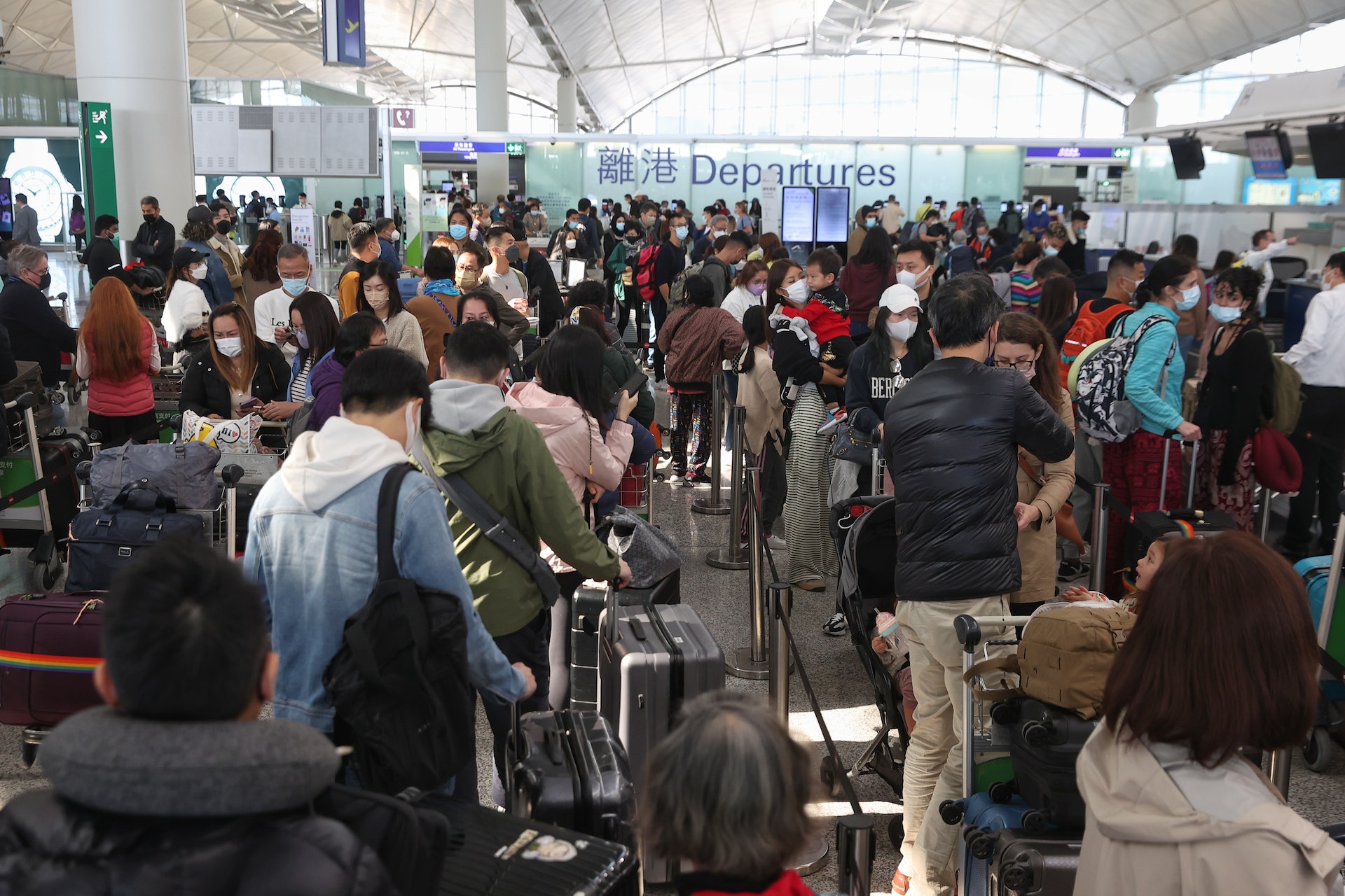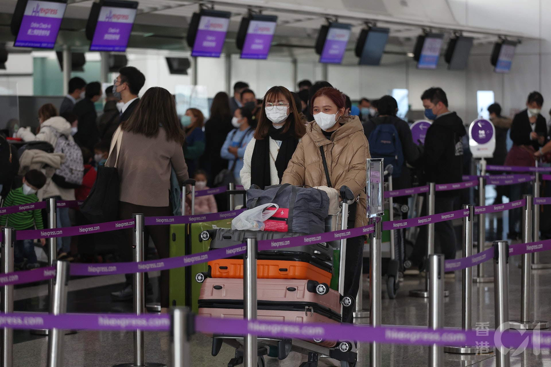+ t2 u# }( r7 K0 G9 u% R公仔箱論壇臨近聖誕新年大假,加上入境防疫措施放寬,12月21日上午機場已有不少人提早出發外遊。(張浩維攝)