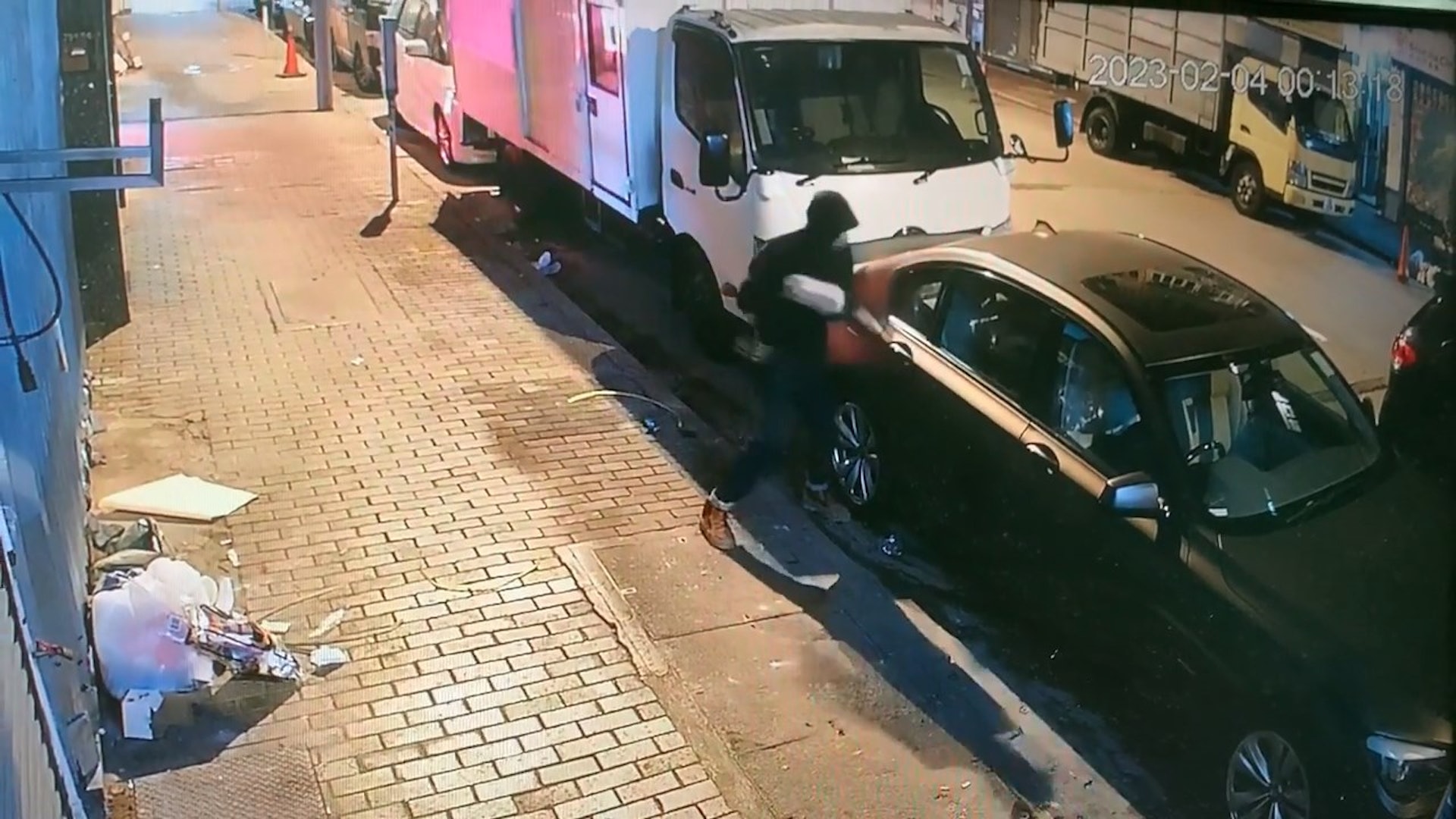 據影片顯示,案發地點為大南街對開,時間為2月3日深夜約11時52分及2月4日約零時13分。警方表示,於2月4日早上10時25分接獲一名男子報案,指凌晨零時左右將其橙色私家車停泊於大南街73號對開,惟取車發現司機位右邊車窗破碎,車內一張記憶卡不翼而飛,案件列作「車內盜竊」處理;另一宗案件初步沒有接獲報案。
