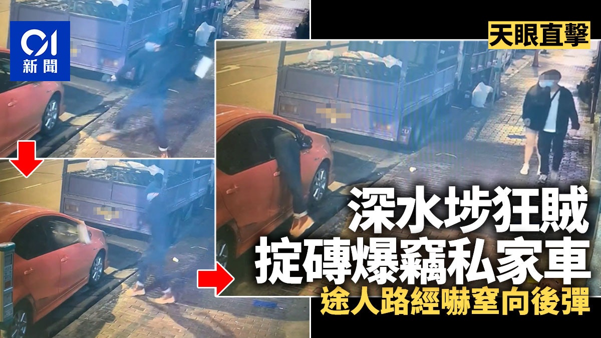 4 m* ]- H% ~, c( @/ A+ O2 qos.tvboxnow.com深水埗發生車內盜竊案。網上瘋傳兩段閉路電視短片,可見一名持手提包、戴冷帽及口罩的男子,手持磚頭走向一輛停泊於咪錶位的橙色私家車,左顧右盼後,隨即將磚頭猛擲向該車司機位車窗,惟第一下窗戶絲毫無損,「嘭」一聲磚頭反彈落地;男子繼而兜圈折返,拾起磚頭重施故技,第二次終令車窗爆裂,磚頭飛入車內。他踱步視察後即從破窗伸手、甚至上半身捐入窗內,成功開啟車門後,四圍翻找,全程最少近4分鐘。期間有數名途人路經,包括一對情侶,女方更一度嚇窒,大步向後彈退。tvb now,tvbnow,bttvb C G! B' w {# {0 u3 D. |