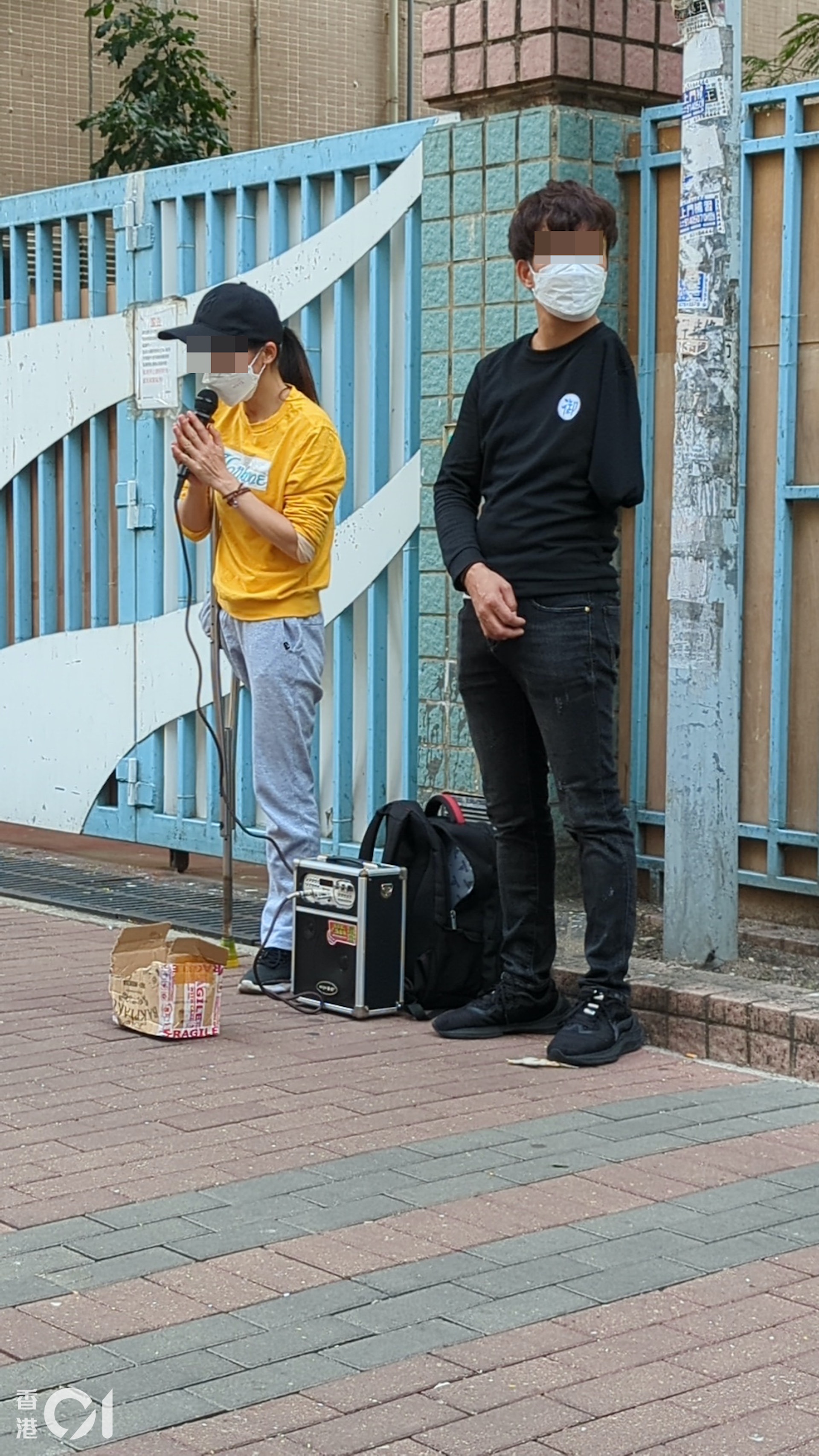 3 }' q# f" v0 K# Q# e# H6 ]涉案男女在長沙灣順寧道街頭賣唱,約10分鐘後疑未見有人打賞,因而轉到保安道街市繼續賣唱。(香港01記者攝)公仔箱論壇- G+ d" w, D7 Q# ~7 C