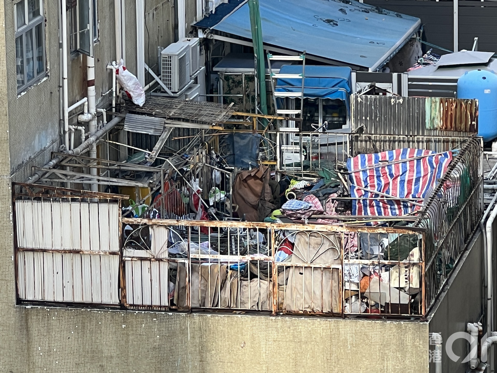 直至約一周前,該單位簷篷終於被拆除。隨即在周日(2月19日),有鄰廈街坊驚見平台被「揭蓋」後的驚人情況,雜物竟堆積如山猶如垃圾崗,更於網上發文問其他街坊﹕「這座大廈平台,究竟發生過什麼事?」很快便引起網民討論。