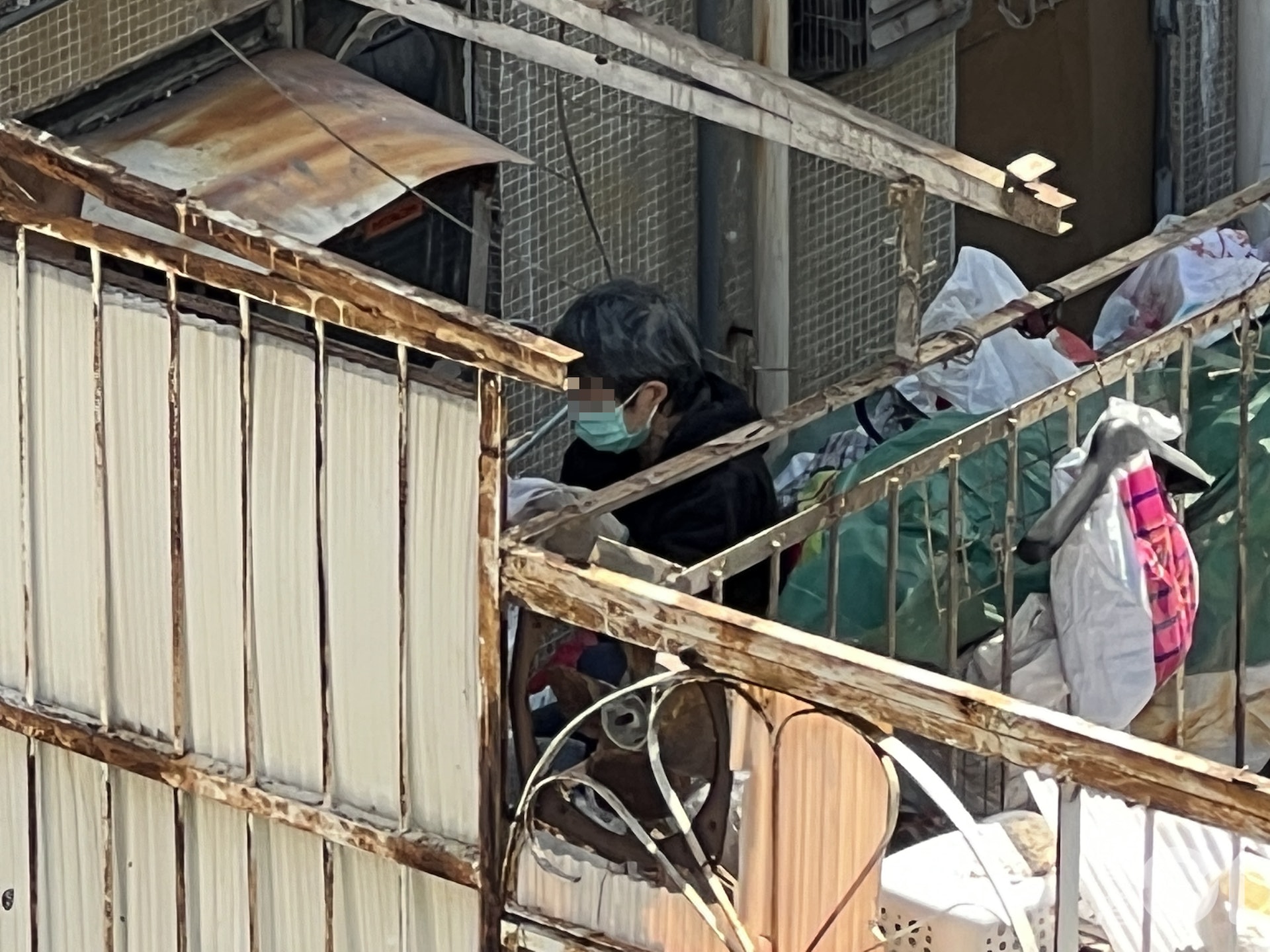 《香港01》記者今日(22日)上午時份,目擊一名戴勞工手套及口罩的老婦於平台執拾物品,其間有食環署人員進入該大廈,懷疑是跟進雜物堆積的問題,後來人員再到鄰廈高位視察平台情況。記者嘗試向人員查詢處理進度,惟不獲回應。直至中午12時,該名老婦以手拉車載同一堆金屬及雜物離開大廈,到東京街一輛回收貨車變賣,記者曾追問老婦囤物習慣,但她沒有理會。而回收貨車的負責人則指,不時見到老婦前來變賣物品,但與她並不認識。