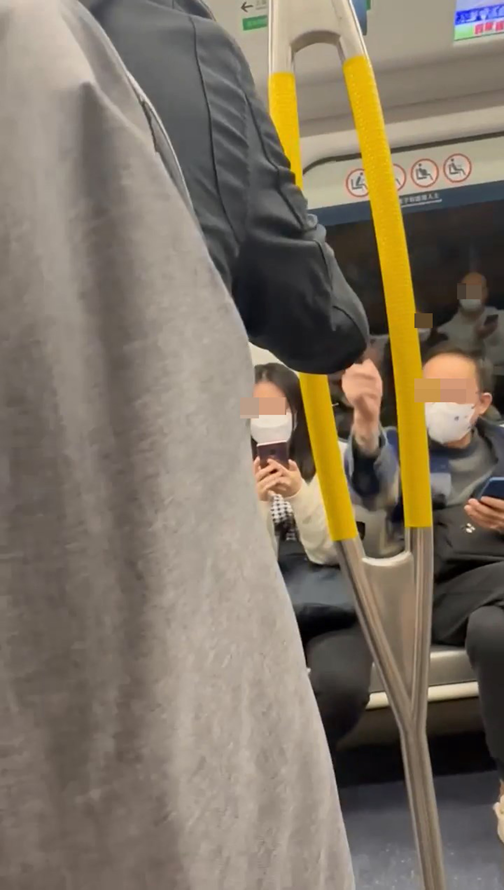 網上廣傳一段大媽大鬧港鐵車廂影片。(Facebook群組「沙田之友」)- h0 A% x4 @2 W