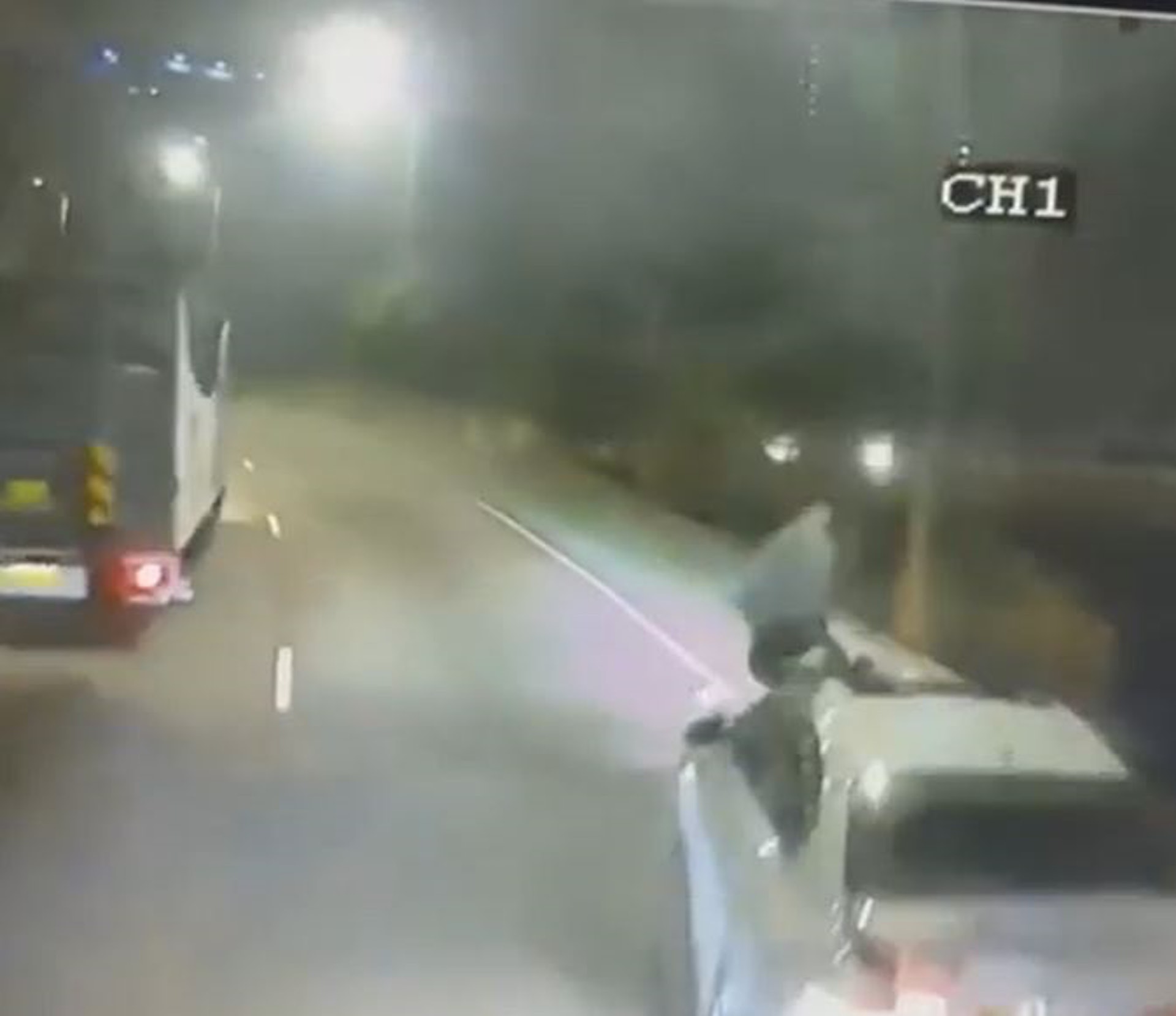 ) g- S2 t! V) Y8 \$ Q; C9 }' @. q1 fos.tvboxnow.com社交網站今日流傳一條恐怖車禍的「車cam片」,事發晚上的公路慢線有一輛貨車前行,快線則有白色私家車高速行駛,其時有人由左至右走出馬路,貨車見狀立即減慢車速,私家車亦盡量收慢,但懷疑後方另一輛車原先是沿慢線行駛,見到貨車減速下便轉入快線,當白色私家車盡力減速時,車尾卻被撞及,結果衝前撞及過路人。