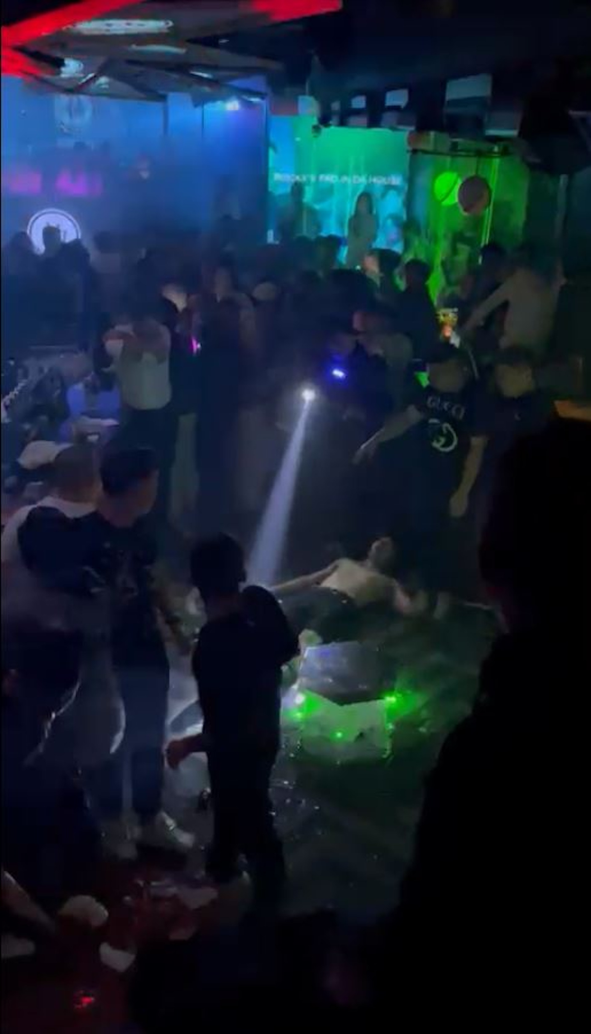 從現場拍攝影片可見,有兩幫、各逾10人的酒客互相指罵,然後有人從後扔掉酒樽及雜物,亦有人手持酒樽防衛,在旁的吧台職員及酒客紛紛蹲下躲避,場面十分驚險。據了解,爭執期間曾有人「撻朵」自稱黑社會成員。