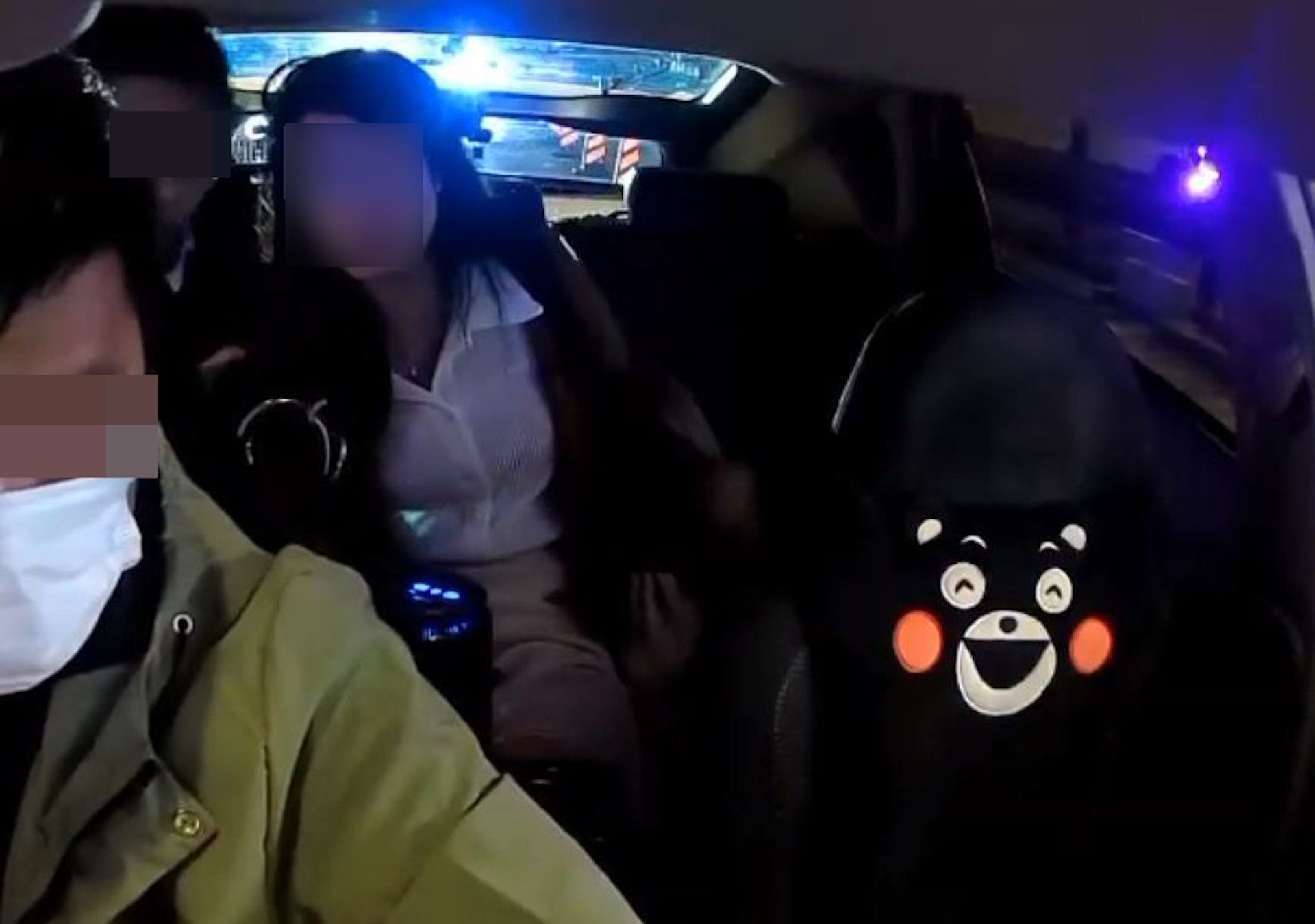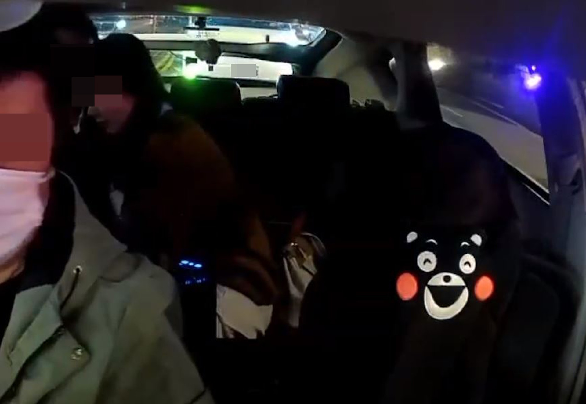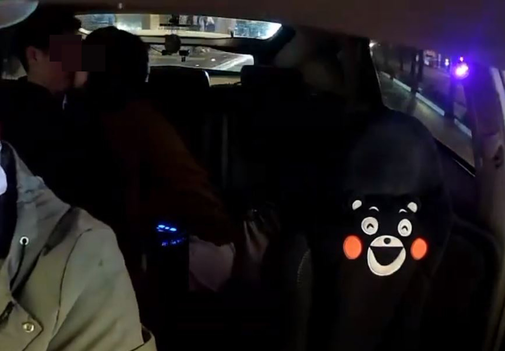 司機開車不久,女方即向男方調情,熱吻後女方便探頭到男方下體位置,並聽到「啜啜」聲響,疑似正在口交,其間男方一直裝作若無其事,表情未有明顯變化,但不自覺四處張望。數十秒後女方回過頭來「中場休息」後再探頭疑似口交。影片中2人一直重複「休息」再「疑似口交」這循環,坐在前方的司機則專心駕駛未有理會。