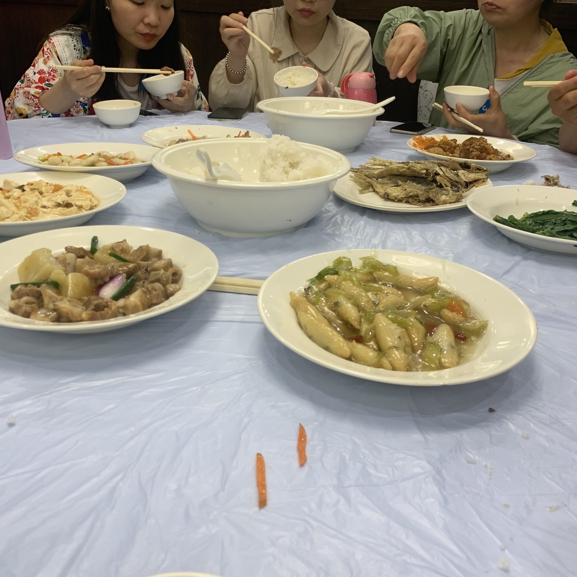 5 }0 L6 b1 p$ `0 G4 o0 fos.tvboxnow.com酒樓內部擠滿旅行團,菜色是八餸加上大碗白飯,約10到12人一桌,餐費旅行社是強調不低於50元餐費。菜色有紅燒肉、 蘿蔔炒雞肉、蘿蔔炒排骨、鹹魚乾、青菜、西芹炒鯪魚肉、魚丸炒青瓜、豆腐。